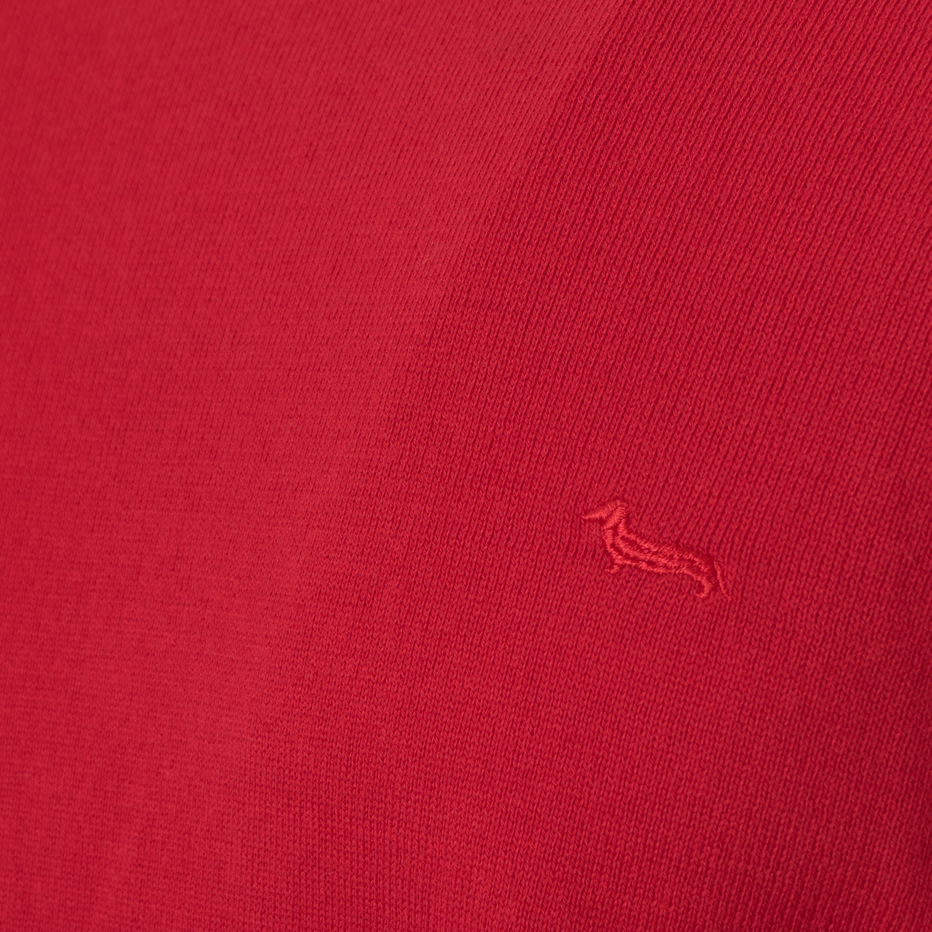 L'eccellenza manifatturiera caratterizza questa maglia a girocollo firmata Harmont & Blaine. Realizzato interamente in puro cotone in Italia, il capo presenta una trama sottile e omogenea che ne definisce la struttura pulita. I bordi a costine su polsini e fondo assicurano una tenuta costante della forma, mentre il giromanica sagomato evidenzia una cura artigianale superiore. Un piccolo bassotto ricamato sul petto identifica con sobrietà l'appartenenza al marchio. Il profilo interno del collo aggiunge un dettaglio tecnico discreto a una silhouette lineare e rigorosa.
