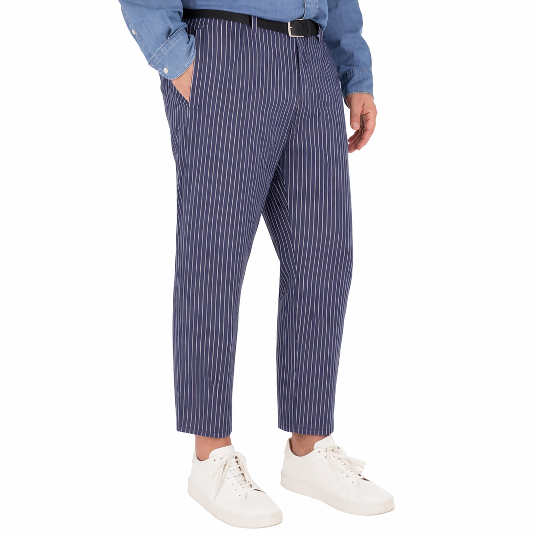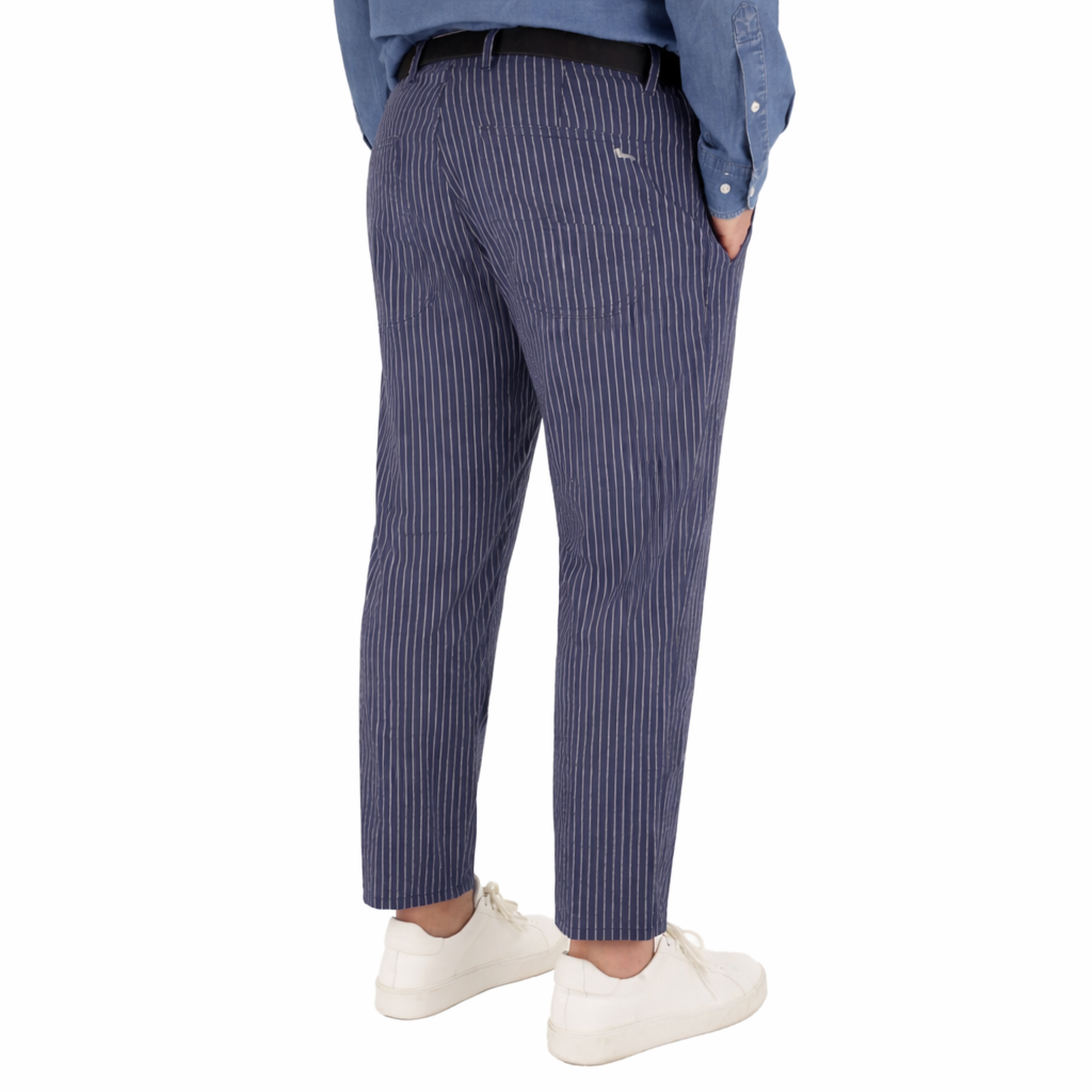 PANTALONE, DA UOMO, QUATTRO TASCHE, A RIGHE, BICOLORE, CON LOGO, CHIUSURA ZIP E BOTTONE - CHINO'S TASCHE IN PIEDI