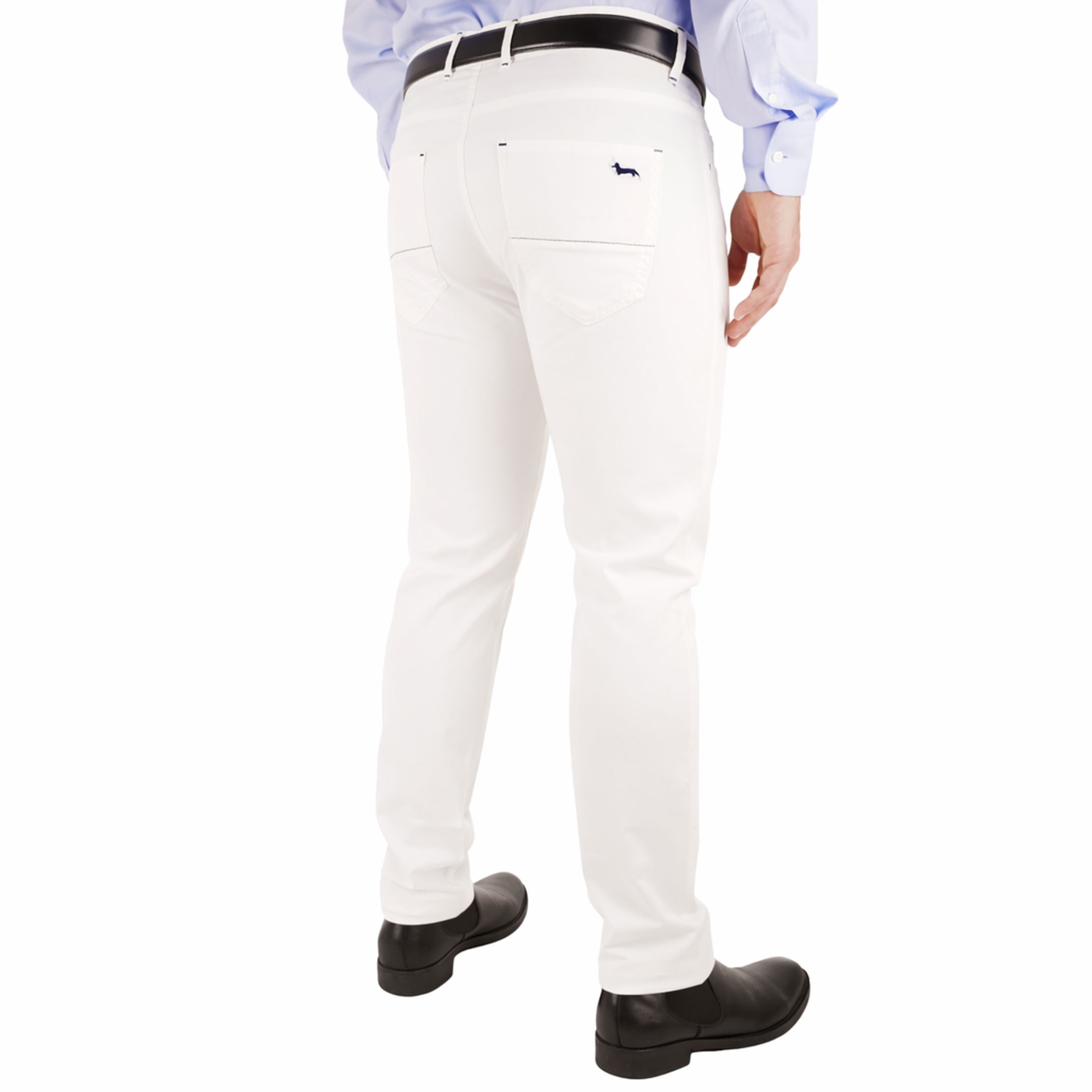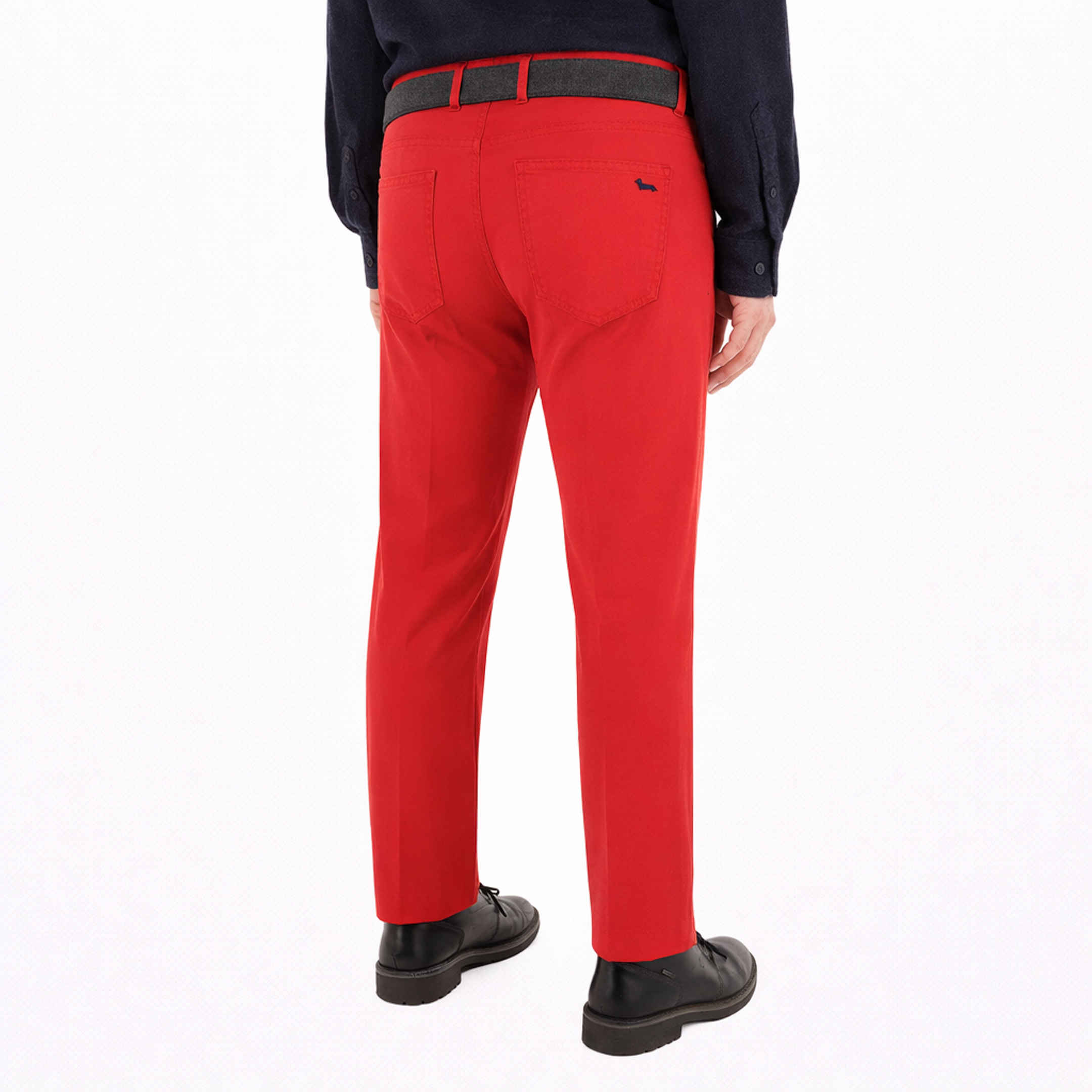 Concentrandosi sulla vestibilità narrow fit, questi pantaloni Harmont & Blaine presentano un taglio jeans pulito e contemporaneo. La struttura a cinque tasche assicura praticità, mentre il tessuto composto per il novantatré percento da cotone e il sette percento da elastam offre flessibilità durante il movimento. La chiusura frontale è affidata a una zip metallica e un bottone centrale coordinato. Piccoli dettagli curati, come il logo ricamato, rifiniscono la superficie in tinta unita. Le cuciture a vista seguono con rigore le linee della gamba, garantendo una linea slanciata e ordinata.
