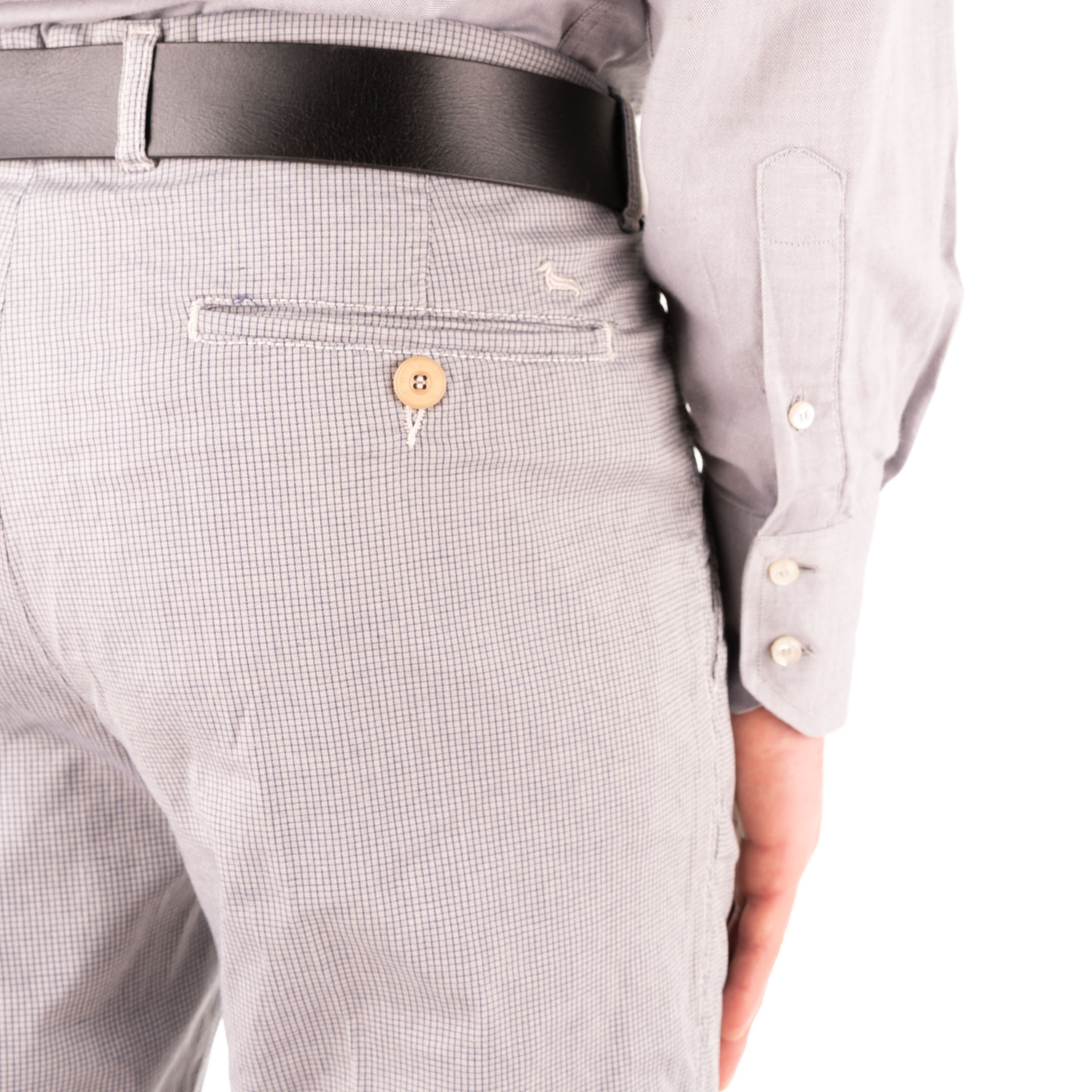 PANTALONE, DA UOMO, CINQUE TASCHE, NARROW FIT, QUADRETTI, BICOLORE, CON LOGO, CHIUSURA ZIP E BOTTONE - CHINO'S BASICO NARROW