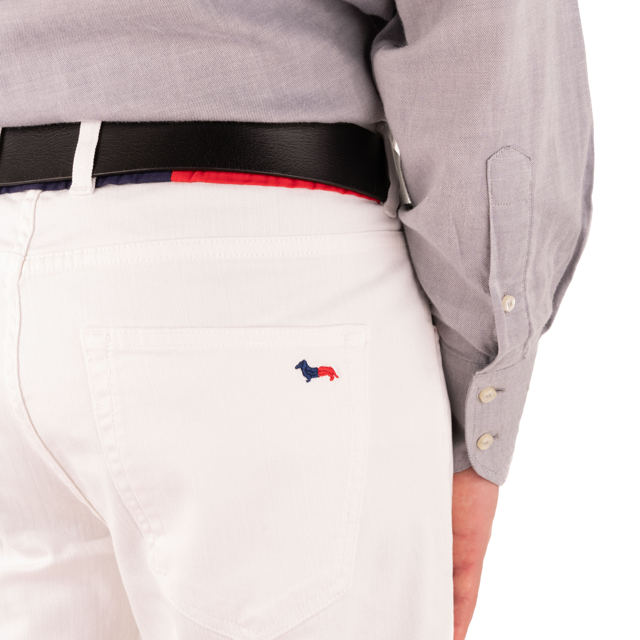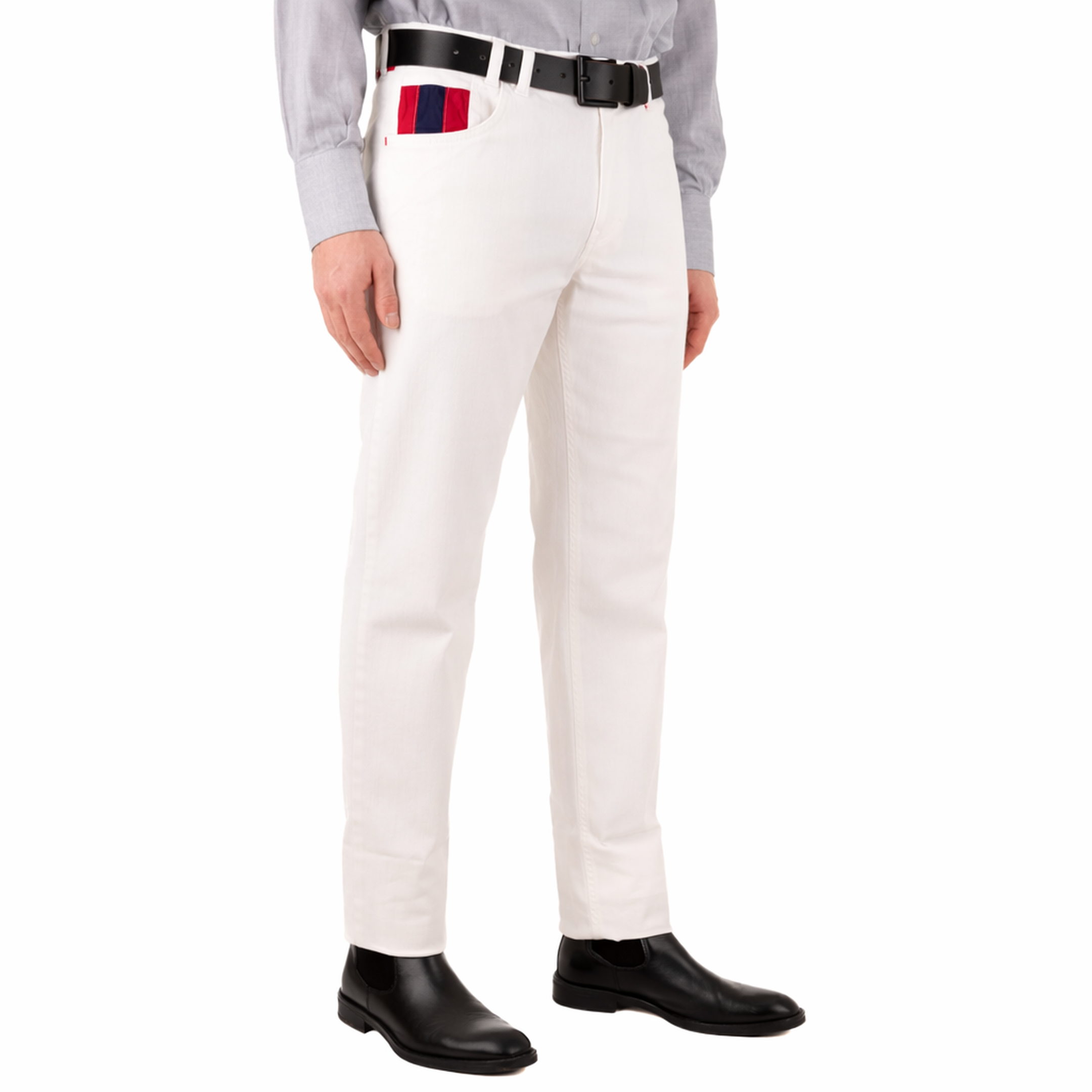 PANTALONE, DA UOMO, CINQUE TASCHE, NARROW FIT, MULTICOLORE, CON LOGO, CHIUSURA ZIP E BOTTONE - PANTALONE FLAG