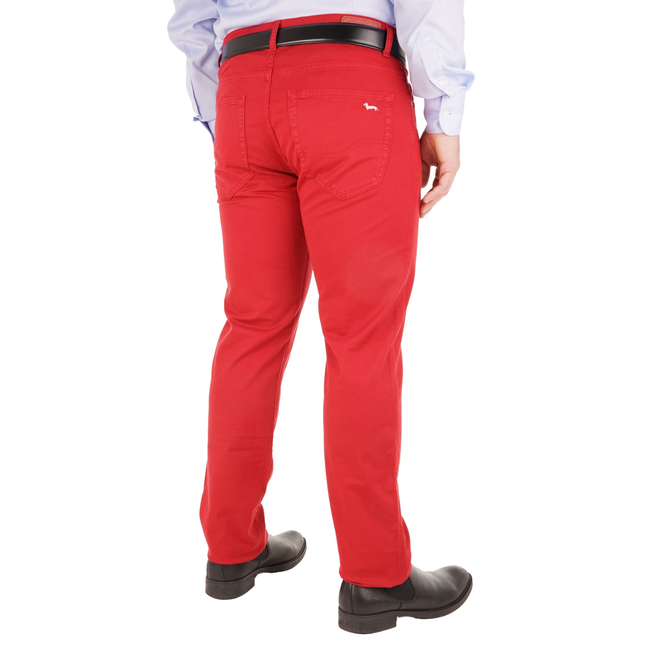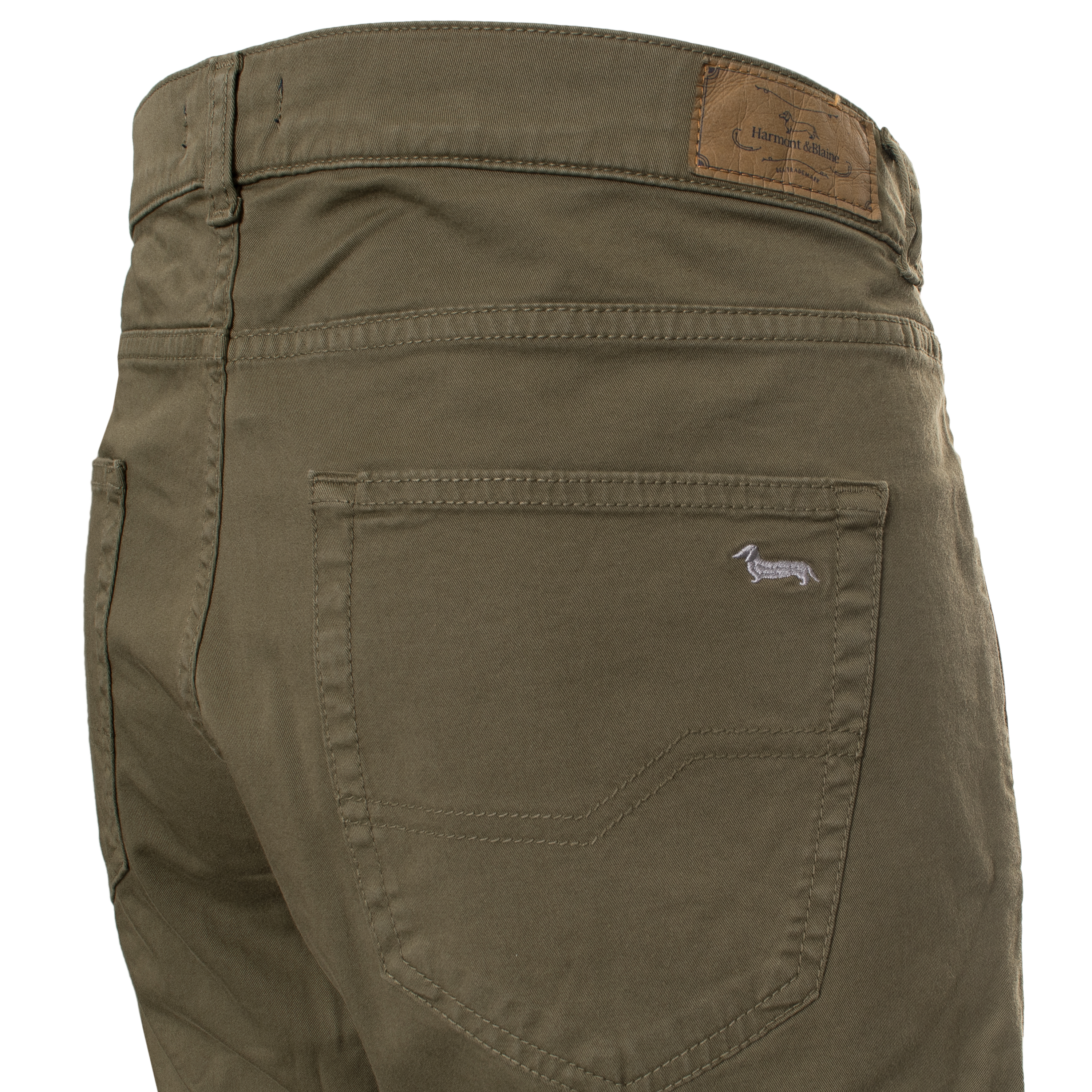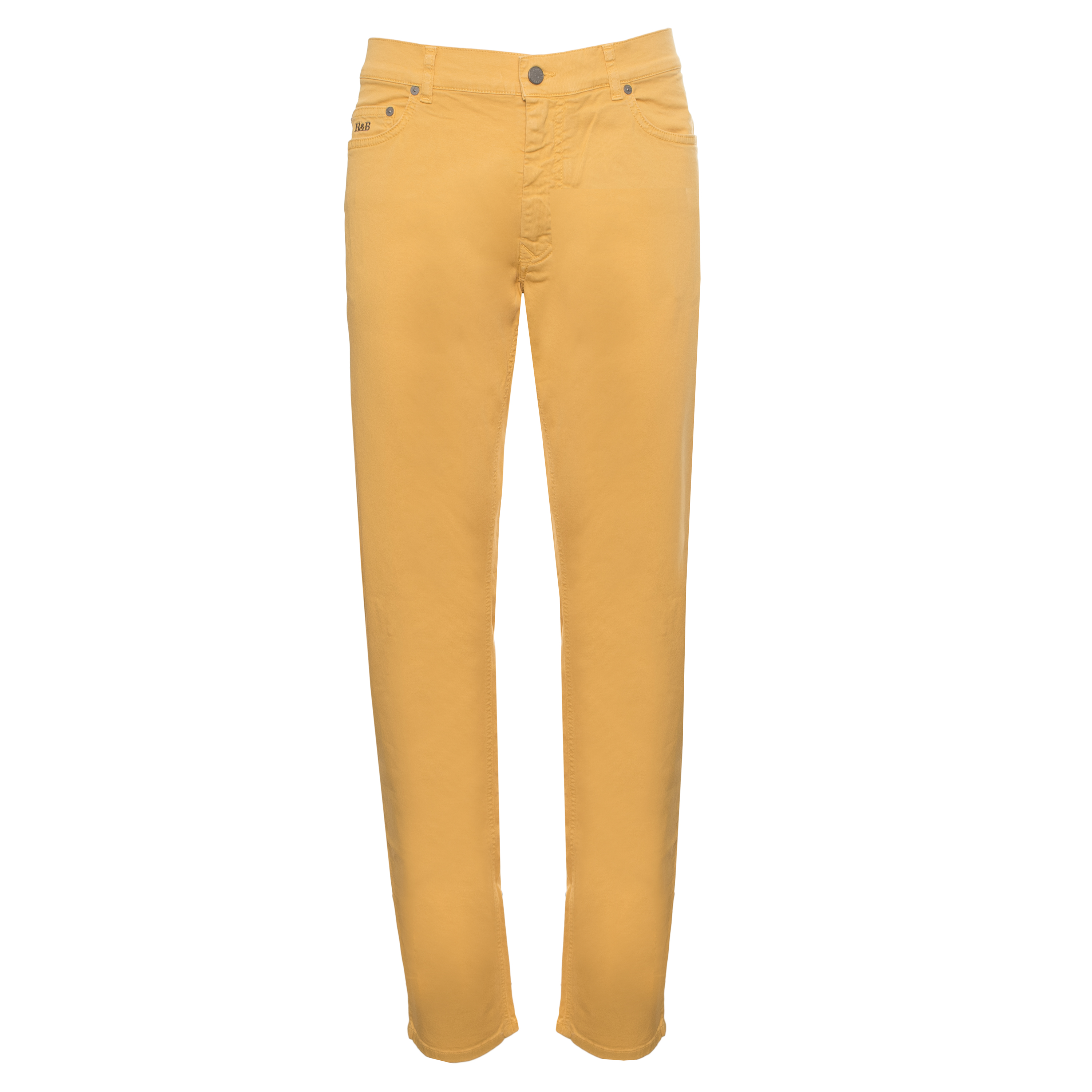 Il taglio narrow definisce la linea di questo pantalone Harmont & Blaine, caratterizzato da una silhouette asciutta che segue con precisione l'anatomia della gamba. Realizzato in una miscela di cotone ed elastan, il capo assicura flessibilità e tenuta della forma nel tempo. La costruzione a cinque tasche richiama l'estetica tradizionale del denim, arricchita da rivetti metallici e una chiusura frontale con zip e bottone. Un discreto ricamo sigla il taschino anteriore, sottolineando la cura artigianale dei dettagli costruttivi.