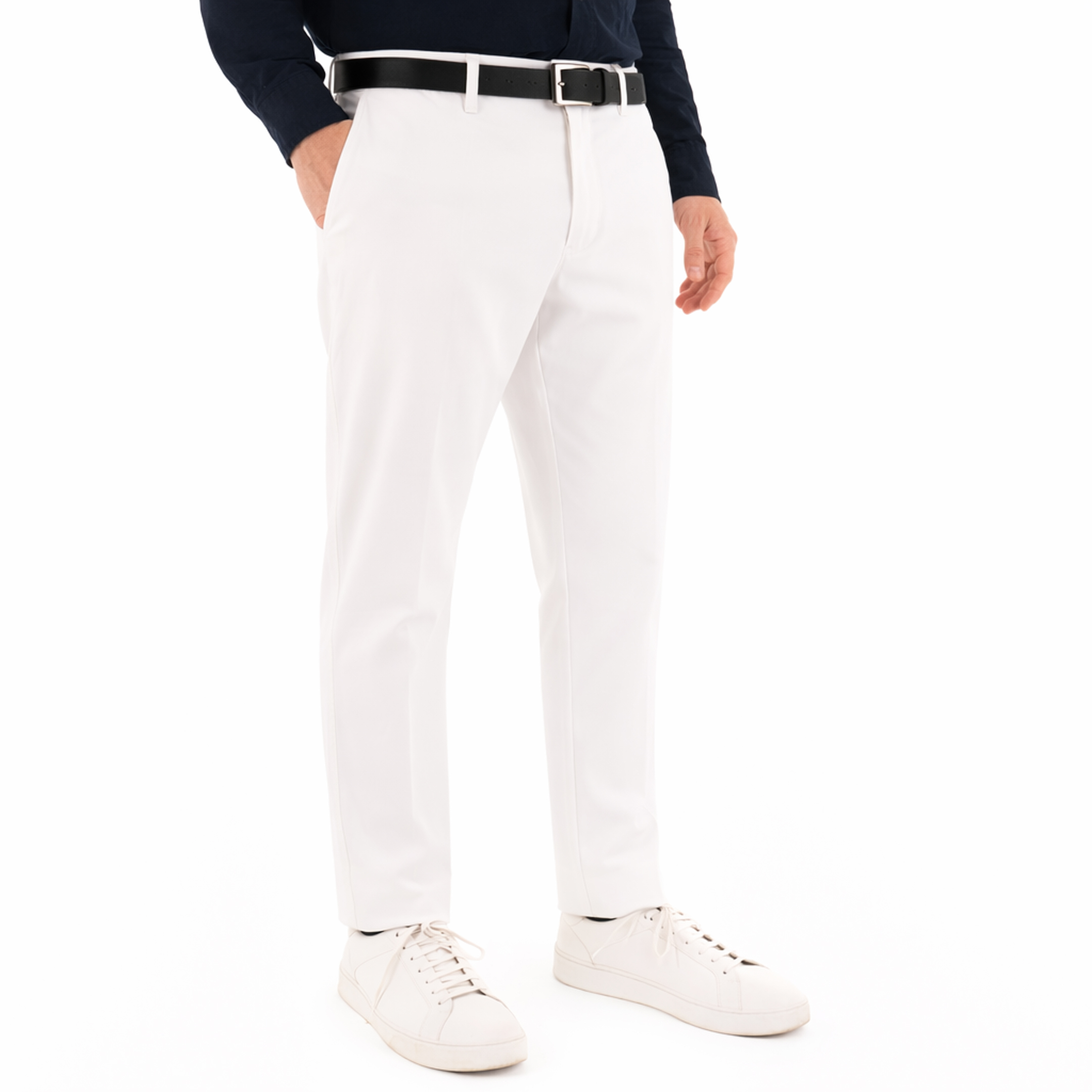 PANTALONE, DA UOMO, QUATTRO TASCHE, NARROW FIT, TINTA UNITA, CON LOGO, CHIUSURA ZIP E BOTTONE - CHINO'S BASICO NARROW