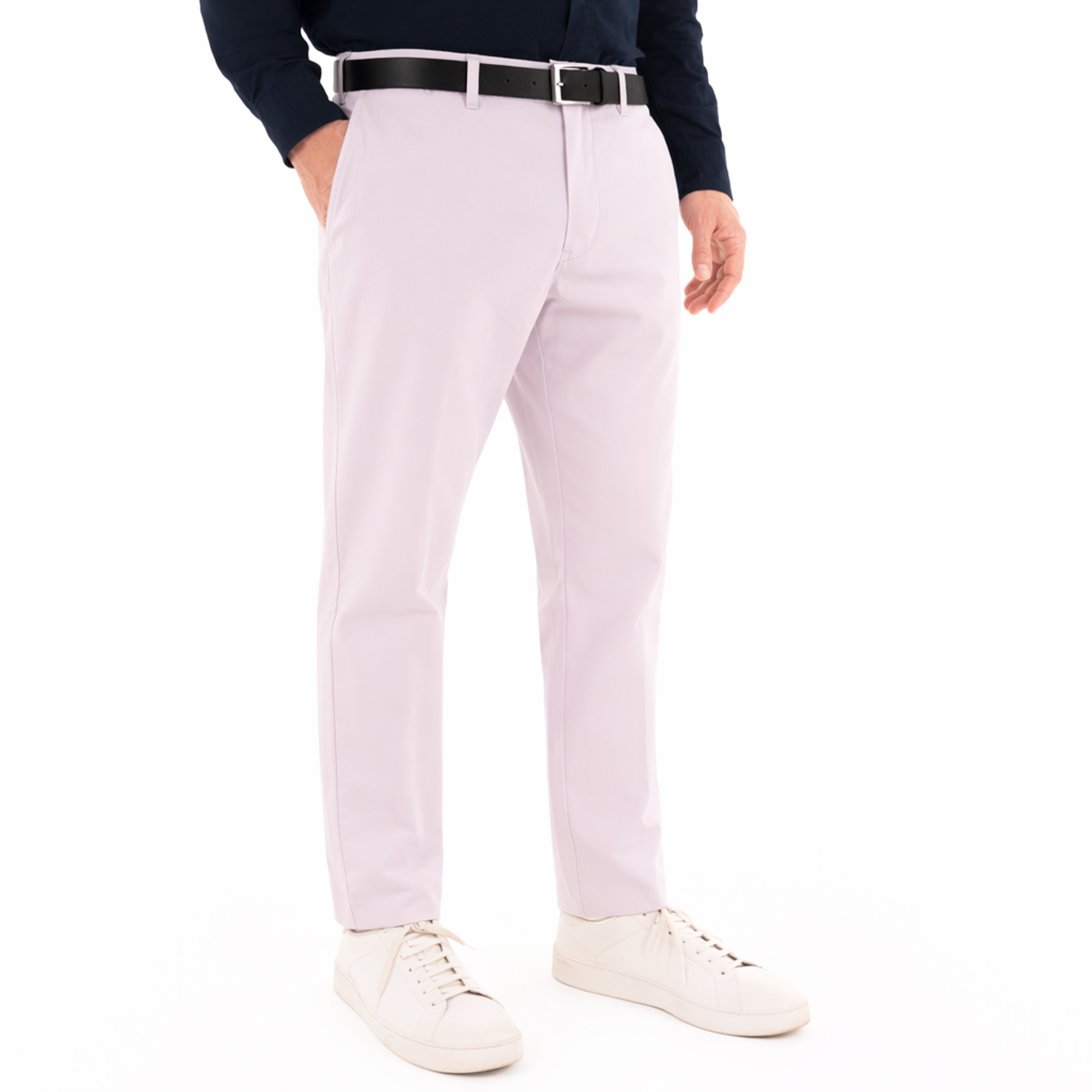 PANTALONE, DA UOMO, QUATTRO TASCHE, CHINO, TINTA UNITA, LOGO RICAMATO, CHIUSURA ZIP E BOTTONE