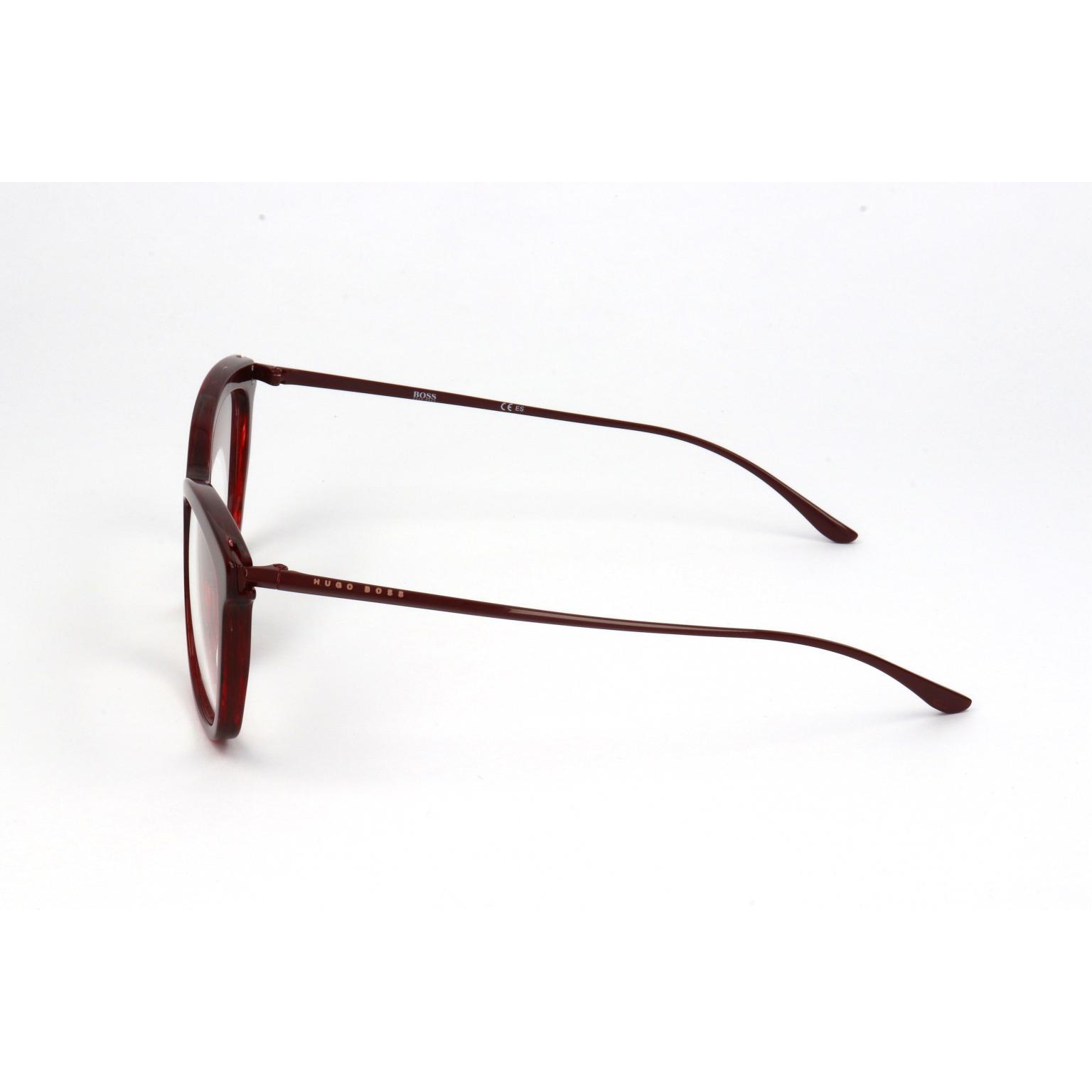 Questi occhiali firmati HUGO BOSS mostrano una silhouette a farfalla sofisticata e decisa. La montatura presenta profili smussati che conferiscono un volume armonioso al viso, mantenendo una struttura leggera e bilanciata. La transizione tra il frontale e le sottili aste è eseguita con una cura sartoriale che sottolinea l'attenzione del marchio per la precisione tecnica e la pulizia formale, offrendo un accessorio dal carattere distintivo.