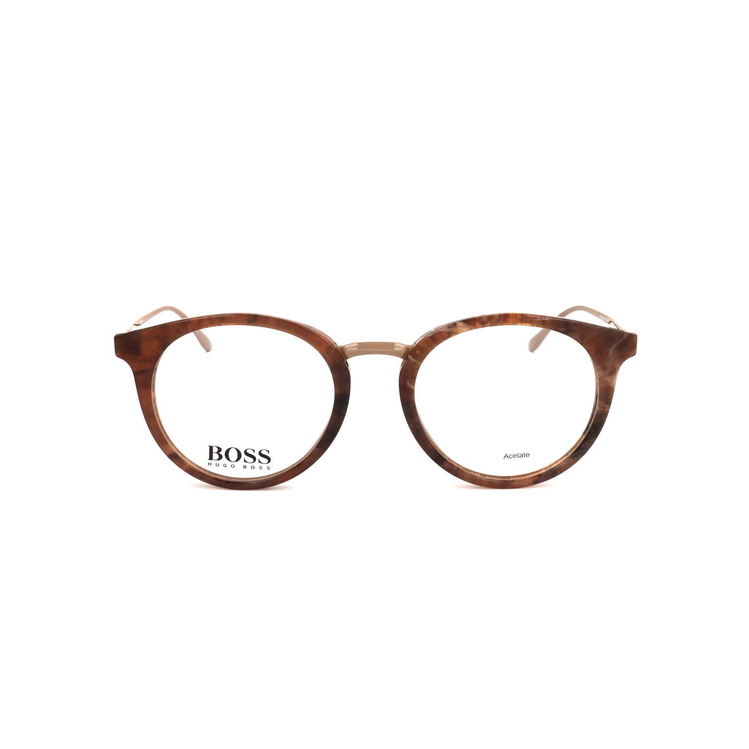 Questi occhiali firmati HUGO BOSS presentano una silhouette arrotondata dal fascino senza tempo. La struttura frontale, caratterizzata da volumi equilibrati, si raccorda a un ponte metallico sottile che conferisce leggerezza visiva all'accessorio. Le aste filiformi completano il design con estrema precisione tecnica.