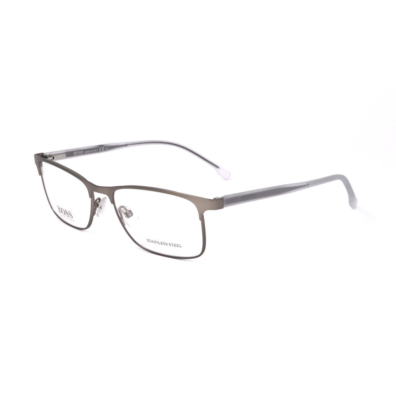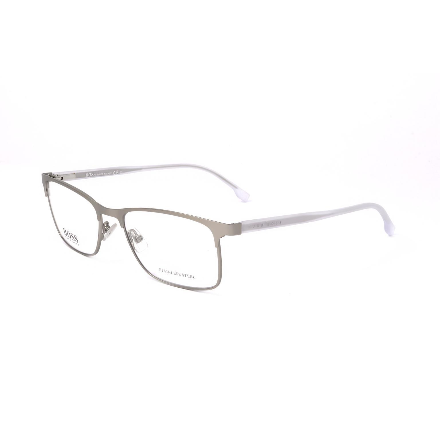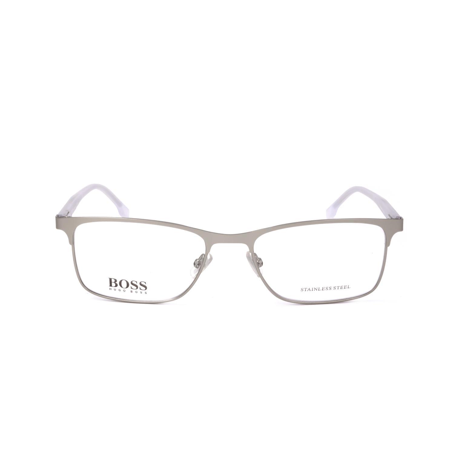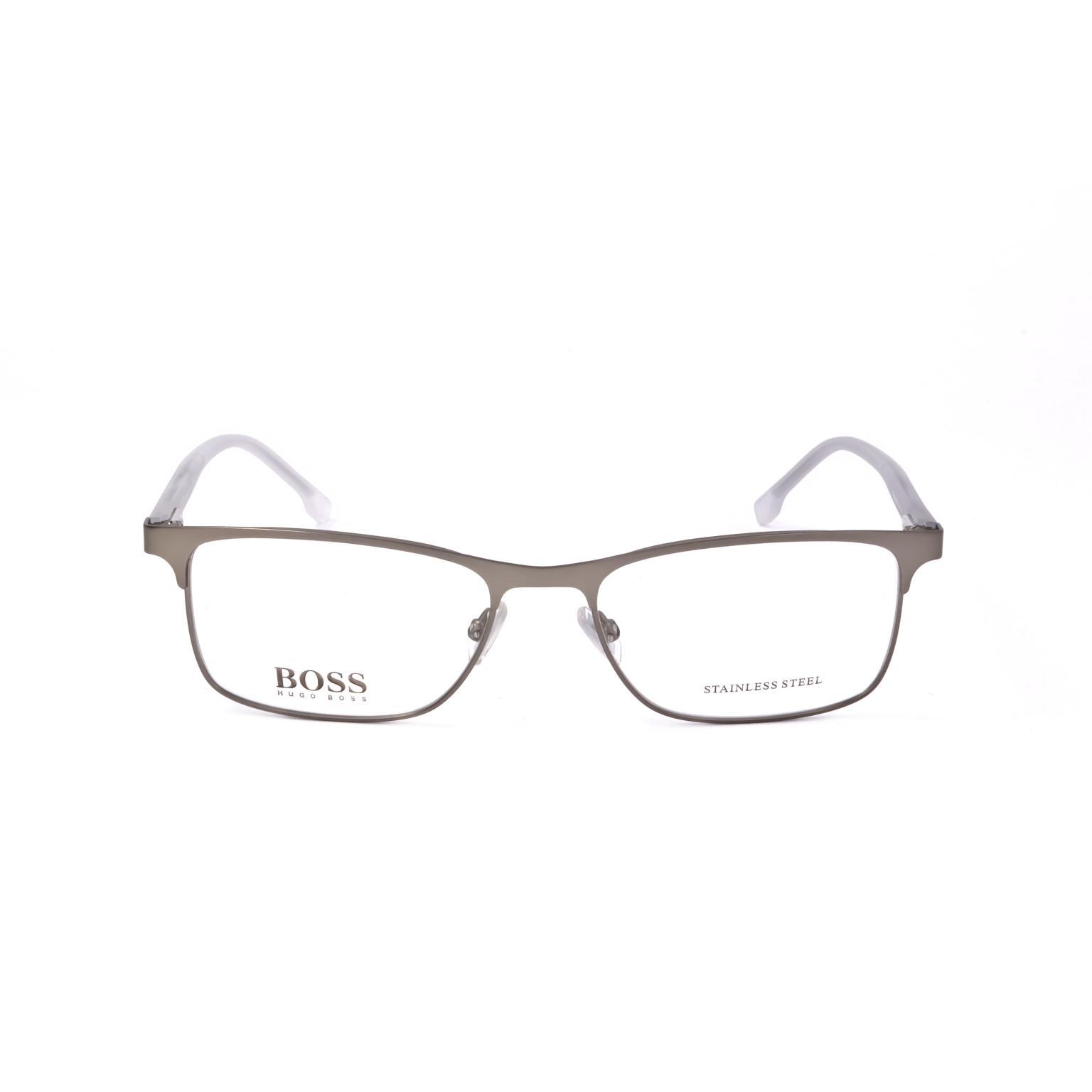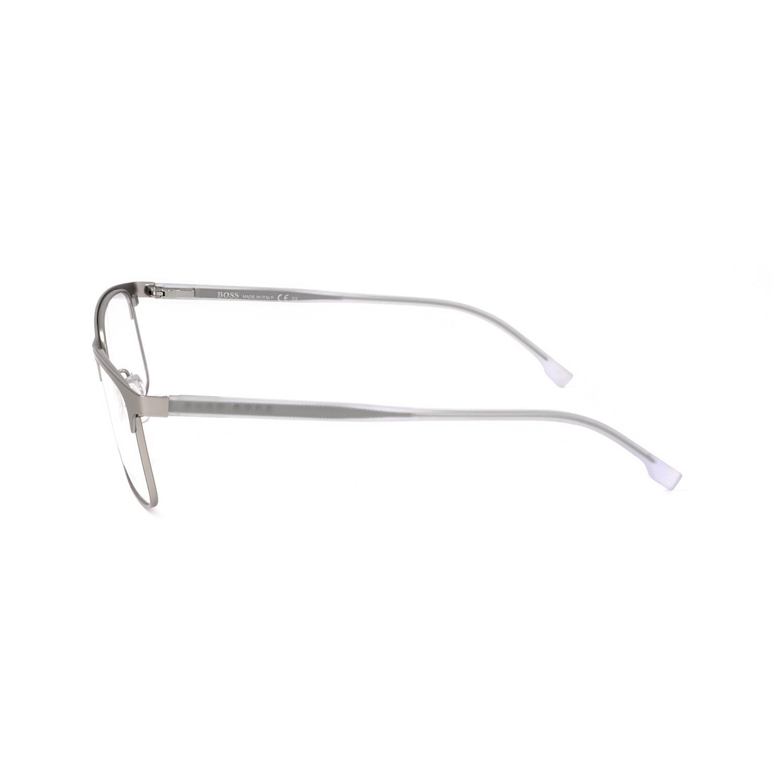 Questi occhiali di HUGO BOSS presentano una montatura rettangolare definita da linee pulite e una struttura sottile. Il design si distingue per la sua geometria rigorosa, con lenti ampie da 56 mm che offrono una copertura ottimale. La parte superiore della montatura segue una curva leggera, garantendo un'estetica equilibrata e professionale, mentre il ponte da 18 mm assicura una calzata stabile e proporzionata sul viso.