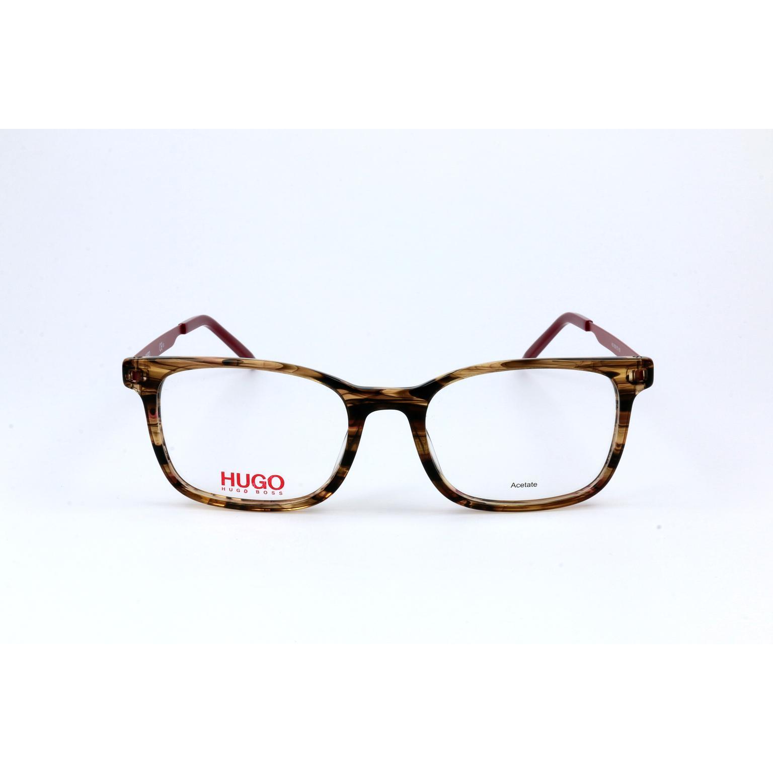 Questi OCCHIALI firmati HUGO presentano una silhouette rettangolare dai profili smussati, offrendo un equilibrio visivo che comunica solidità e precisione tecnica. La montatura frontale si distingue per uno spessore deciso, mentre le aste sottili alleggeriscono la struttura complessiva, creando un'estetica sofisticata e rigorosa. La cura nei dettagli costruttivi riflette l'approccio distintivo del marchio nel settore degli accessori.