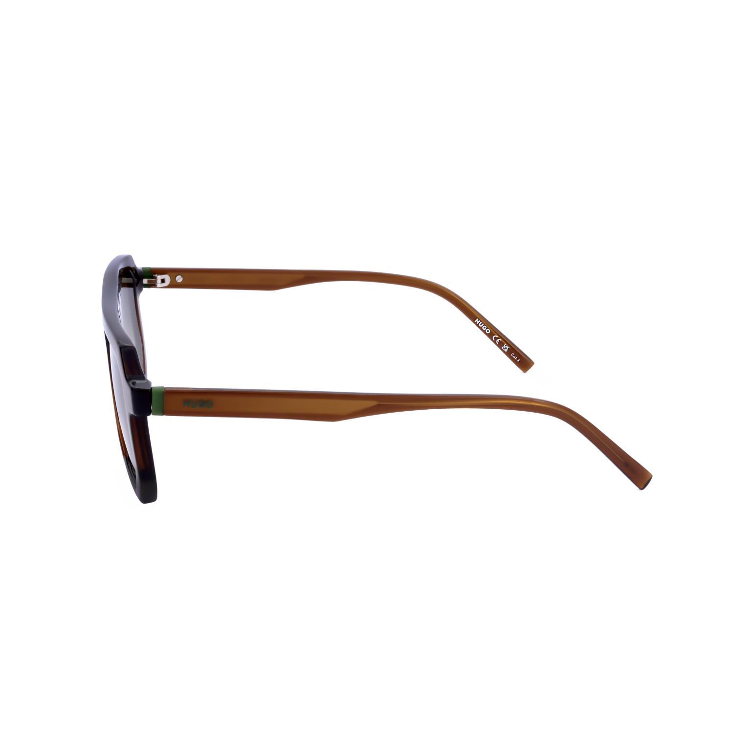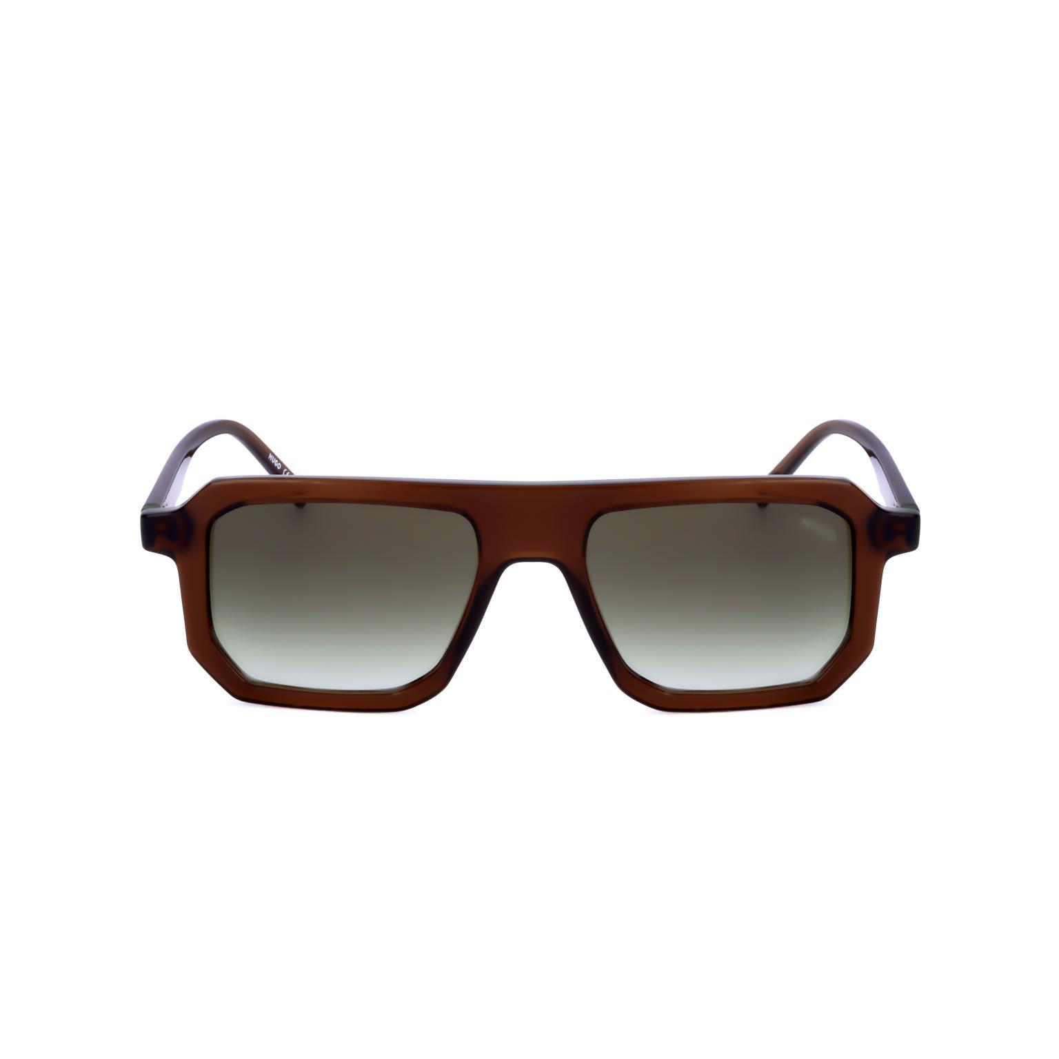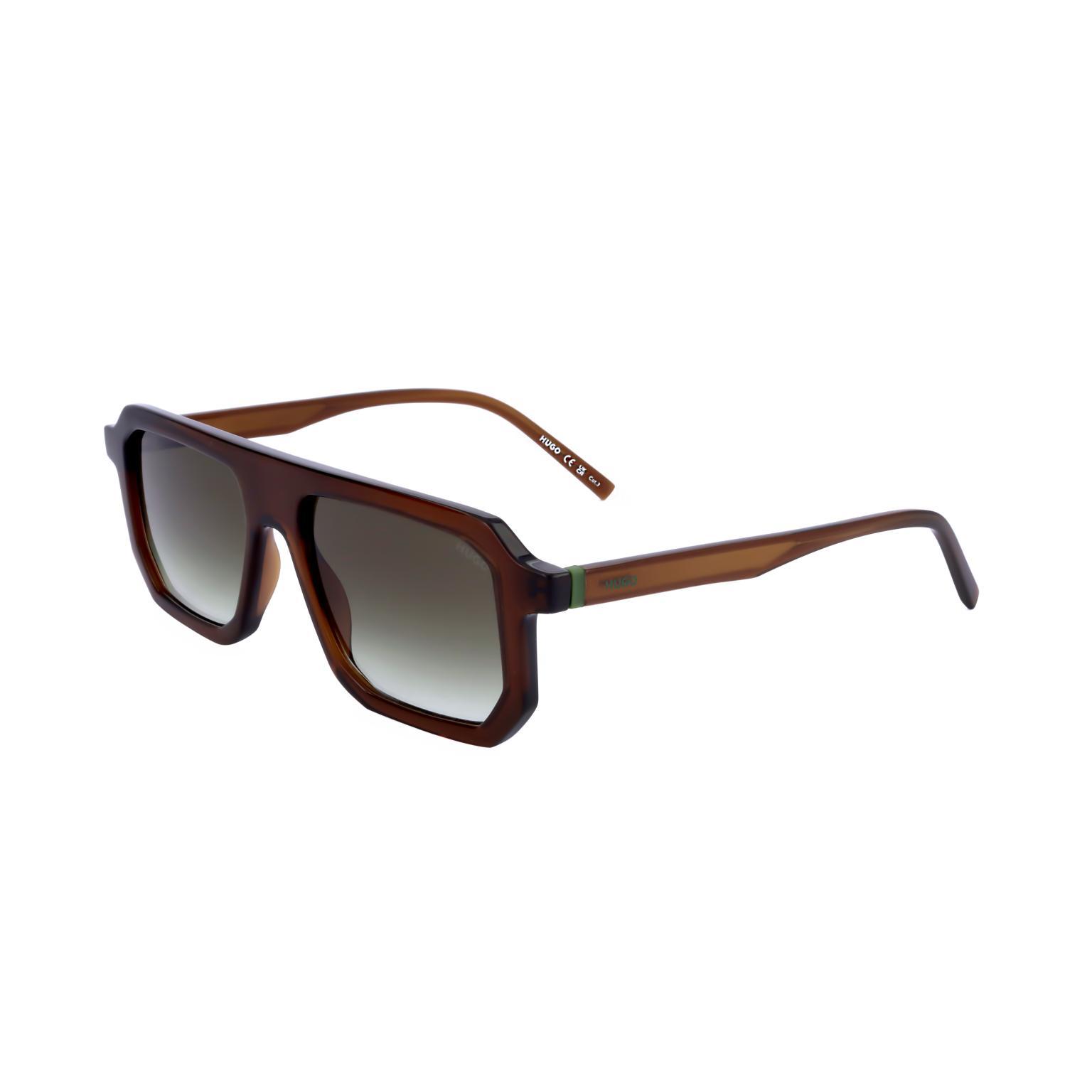 Questi occhiali da sole da uomo di HUGO presentano una montatura dalla silhouette distintiva e contemporanea, caratterizzata da linee pulite e un design angolare che ne esalta il profilo. Le lenti fumé degradanti si integrano armoniosamente con la struttura robusta.