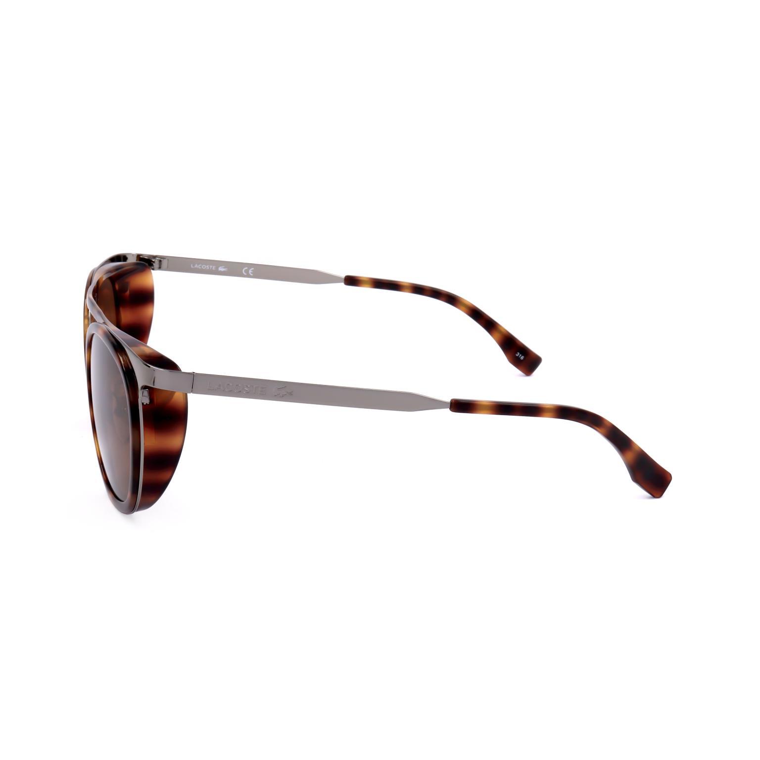 Questi occhiali firmati LACOSTE presentano una struttura in metallo che enfatizza una silhouette rotonda dal carattere deciso. Il design è caratterizzato da un peculiare doppio ponte superiore, una linea orizzontale netta che conferisce stabilità strutturale e un'estetica architettonica ricercata. Le lenti circolari con diametro da 54 mm sono incorniciate con precisione, garantendo un equilibrio visivo armonioso.