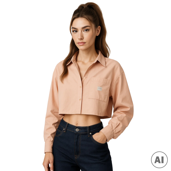 CAMICIA, DA DONNA, CON TASCHINO, COLLO CLASSICO, DROP CORTO, MANICA LUNGA, TINTA UNITA, CON LOGO, CHIUSURA BOTTONI, WOVEN LABEL CROPPED, TGW