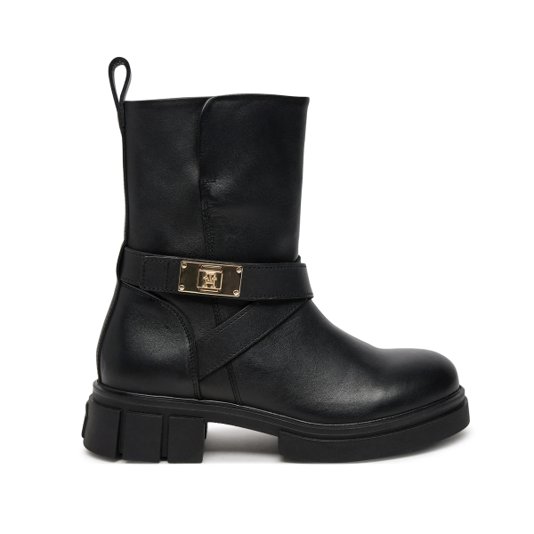 STIVALETTO, DA DONNA, TINTA UNITA, CON LOGO, SUOLA IN GOMMA, CHIUSURA ZIP, BIKER LEATHER,