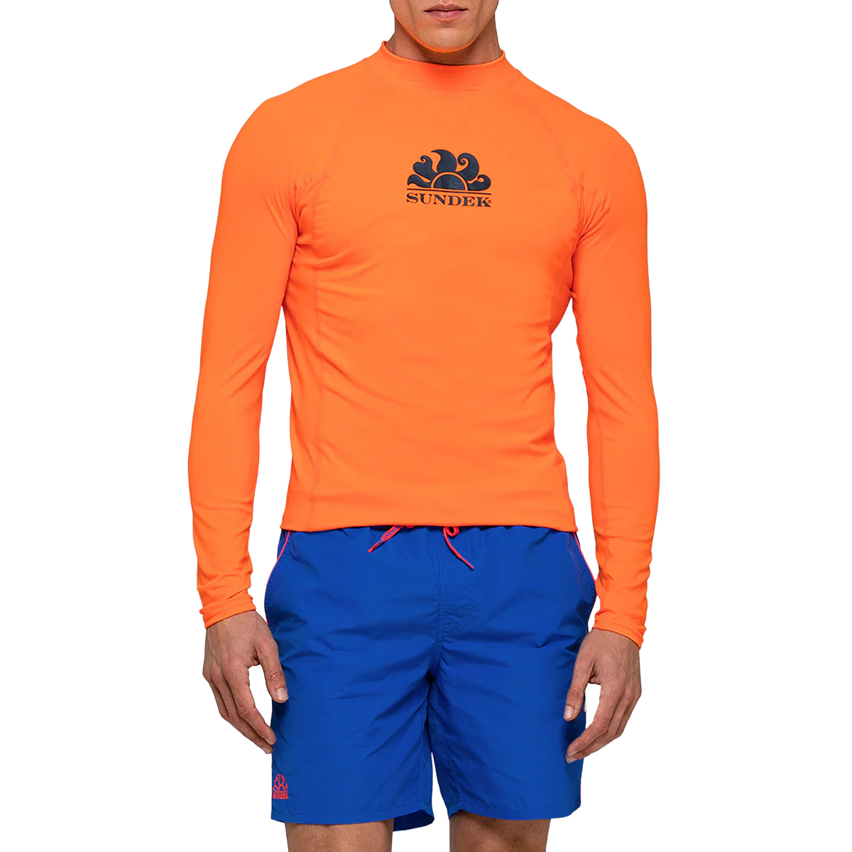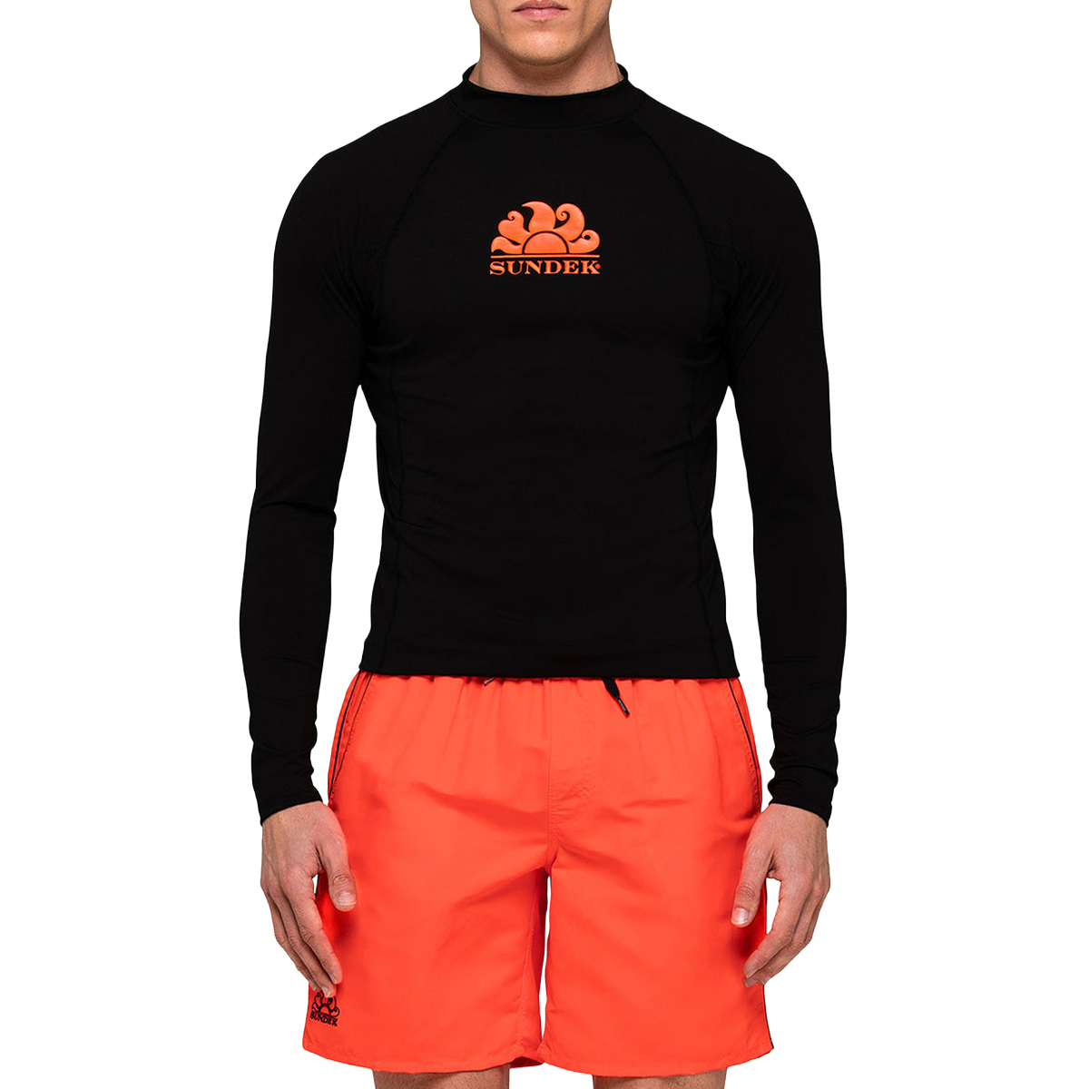 T-SHIRT, DA UOMO, GIROCOLLO, ELASTICIZZATO, MANICA LUNGA, TINTA UNITA, CON LOGO, STAMPATA SUNDEK - RASHGUARD