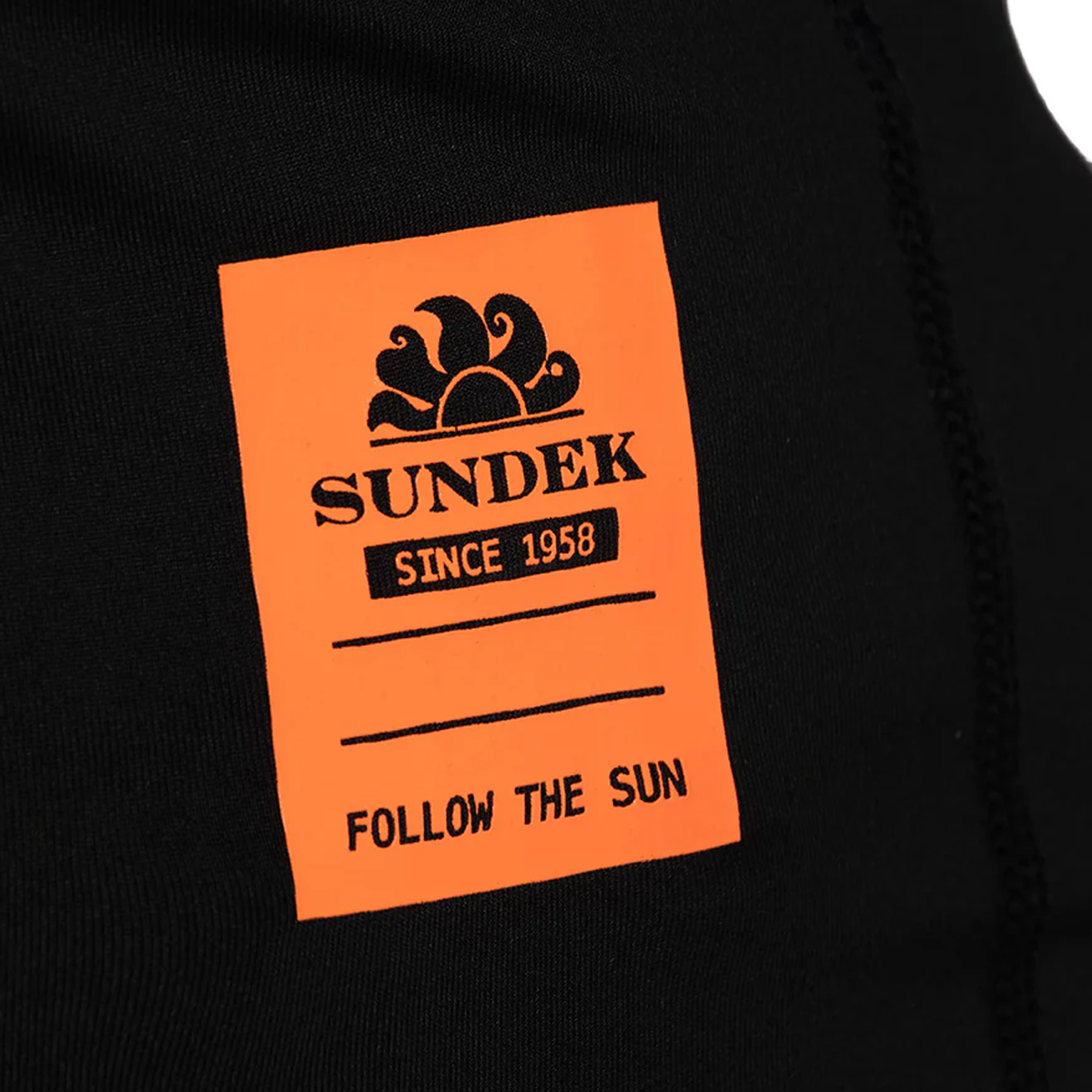 Questa T-SHIRT SUNDEK - RASHGUARD di SUNDEK è un capo tecnico caratterizzato da una struttura ergonomica che segue con precisione le linee del corpo. Le cuciture piatte a vista definiscono i pannelli frontali e le maniche lunghe, assicurando una resistenza superiore e riducendo l'attrito durante l'uso dinamico. Il collo a lupetto offre una copertura aggiuntiva, mantenendo un profilo aerodinamico e professionale.
