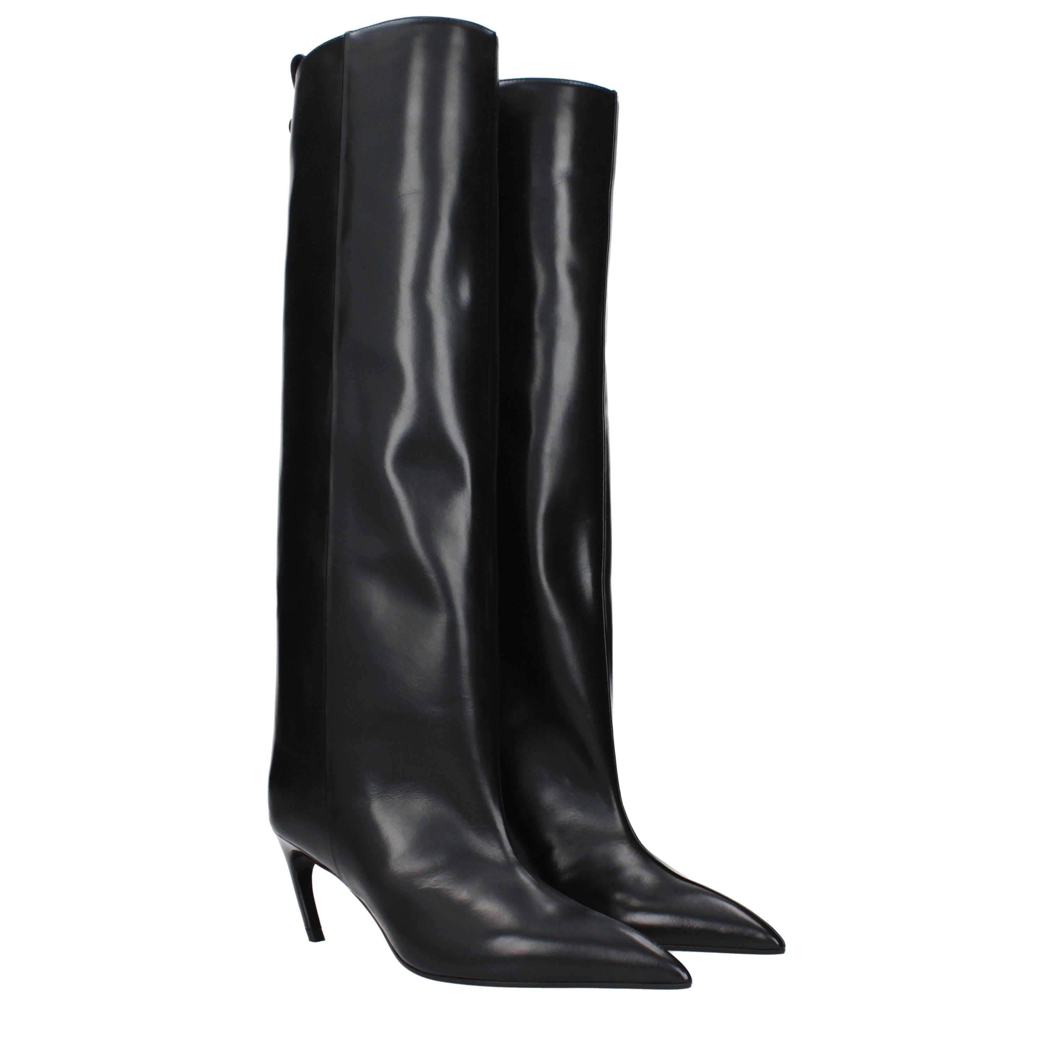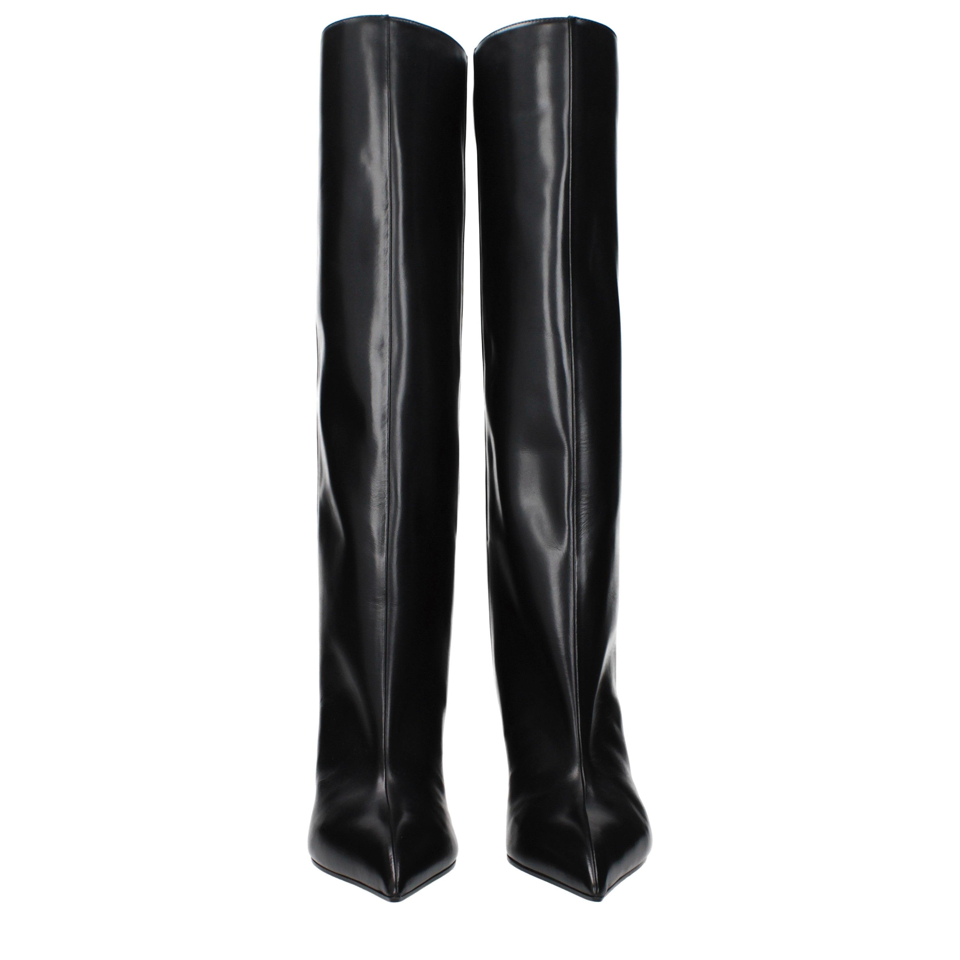Realizzati interamente in pregiata pelle e prodotti con maestria in ITALY, questi stivali vantano una suola in cuoio che assicura resistenza e flessibilità. La qualità della pelle garantisce una lucentezza naturale e una superficie liscia al tatto, mentre il piccolo dettaglio metallico sul retro sottolinea l'attenzione del marchio per le finiture discrete ma sofisticate. La costruzione interna è studiata per mantenere la forma nel tempo, offrendo un prodotto che valorizza l'assortimento di ogni boutique di lusso.
