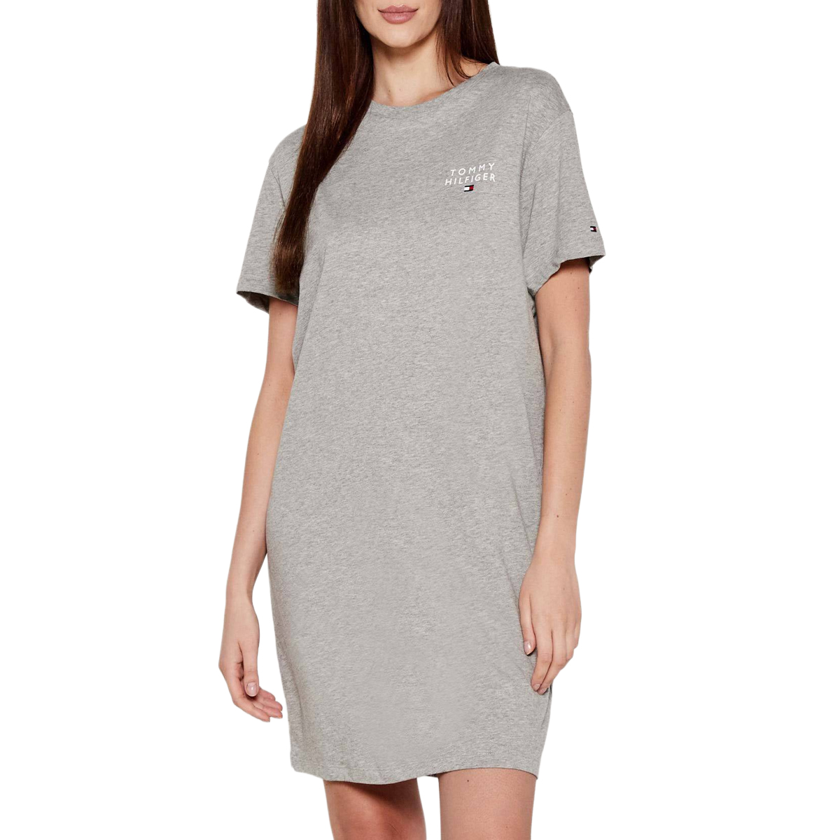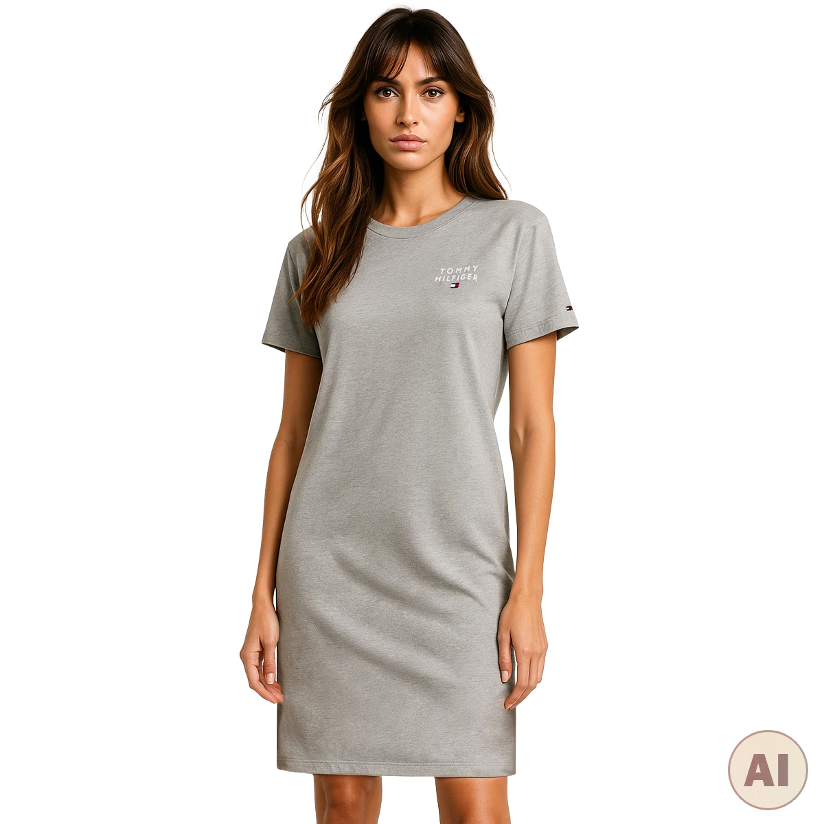 ABITO AL GINOCCHIO, DA DONNA, GIROCOLLO, MANICA CORTA, TINTA UNITA, LOGO STAMPATO