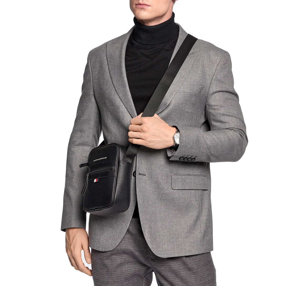 BORSA A TRACOLLA, DA UOMO, TINTA UNITA, CON LOGO, CHIUSURA ZIP, ESSENTIAL PU MINI RE, BDS