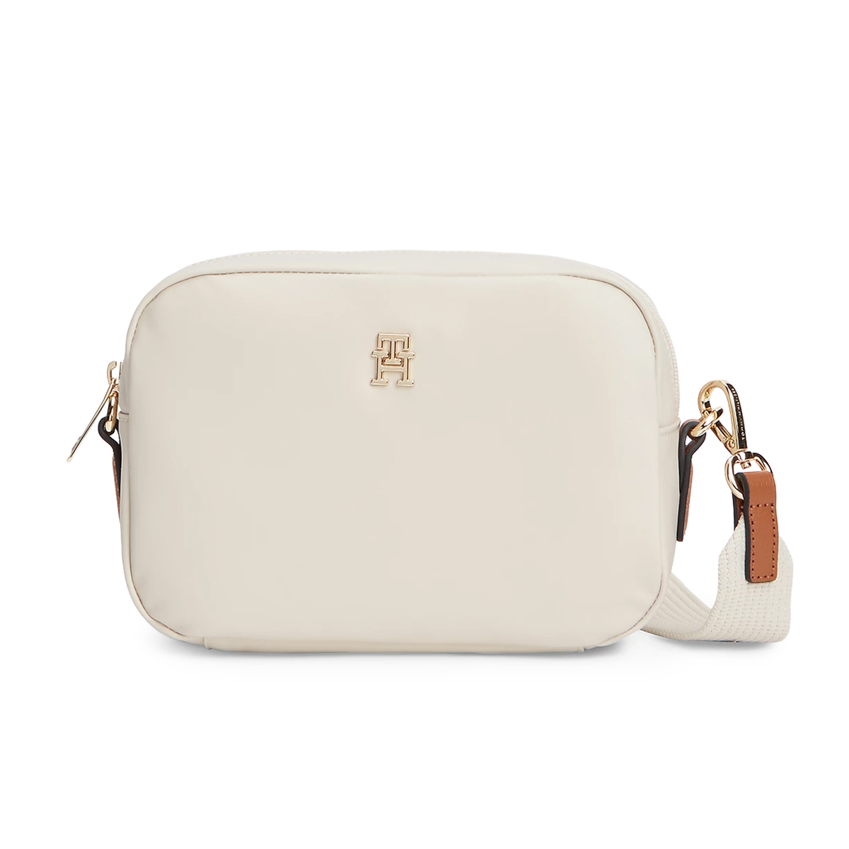 Questa borsa a tracolla Popette Camera Bag di Tommy Hilfiger è un accessorio dalla struttura rigorosa e dal design estremamente pulito. La silhouette rettangolare con angoli smussati evidenzia un approccio funzionale all'estetica contemporanea, valorizzato dal monogramma metallico frontale che sigilla l'identità del brand.