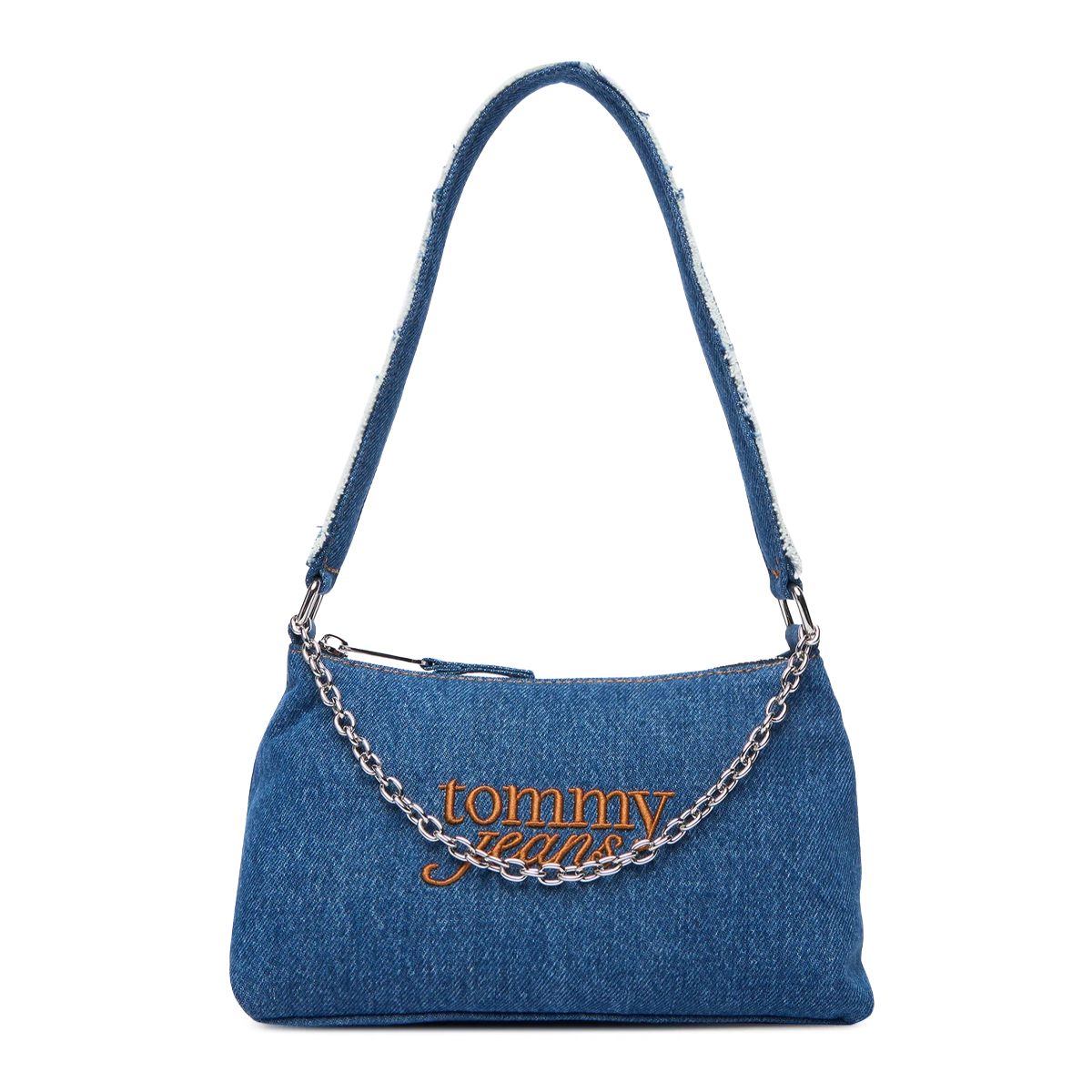 Questa borsa a spalla TJW COOL DENIM SHOUL, 1A7 di TOMMY JEANS è un accessorio che riflette un'estetica urbana e contemporanea attraverso una struttura compatta e ben definita. Il profilo ricurvo e il manico singolo con bordi a contrasto mostrano una cura meticolosa per le proporzioni, mentre la catena metallica frontale aggiunge un accento materico deciso alla superficie tessile.