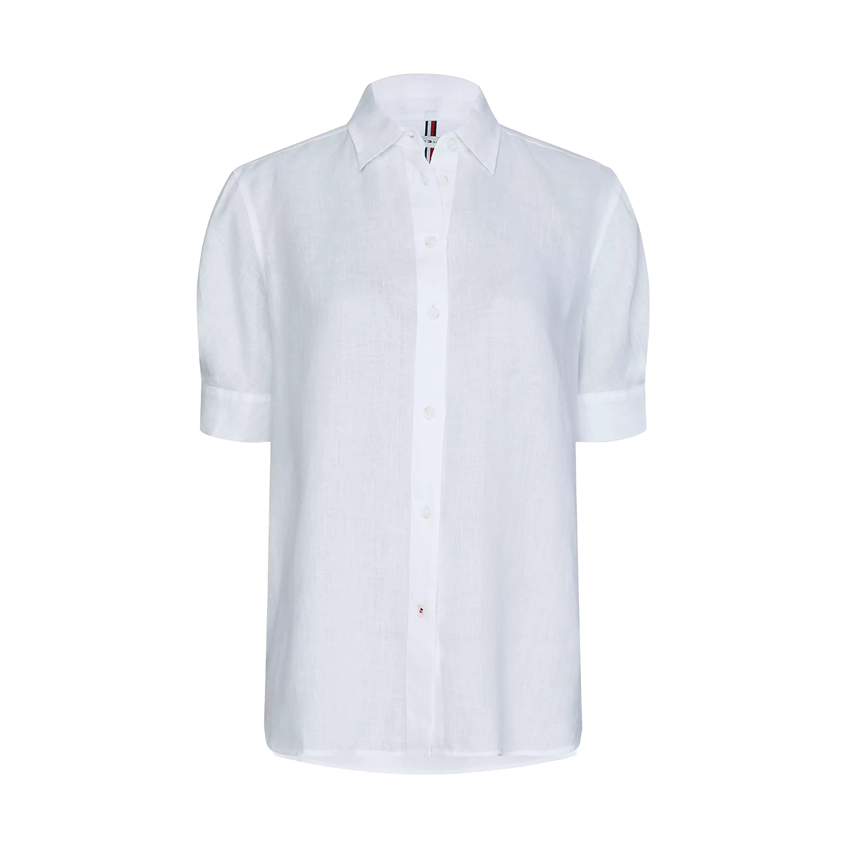 CAMICIA, DA DONNA, COLLO CLASSICO, MANICA CORTA, TINTA UNITA, CON LOGO, CHIUSURA BOTTONI