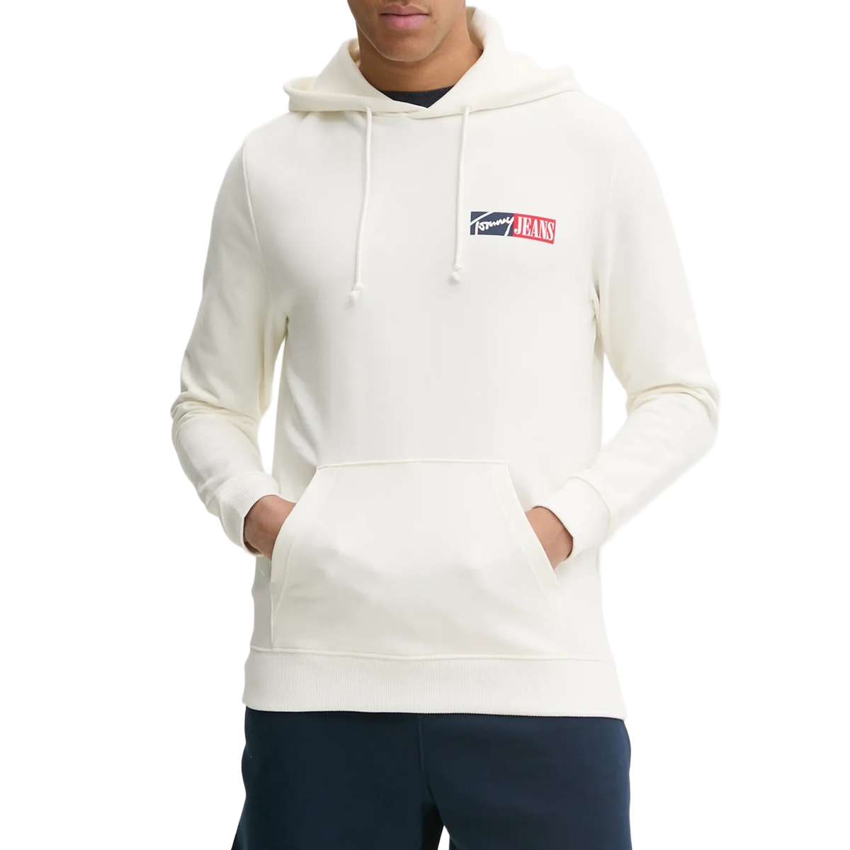 Questa felpa TJM REG ENTRY GRAPHI, BDS di TOMMY JEANS è un capo essenziale che riflette l'identità casual del marchio attraverso una linea pulita e contemporanea. La struttura presenta un cappuccio regolabile con cordini piatti e una pratica tasca a marsupio frontale, elementi che definiscono un'estetica funzionale e immediata. Le finiture a costine sui polsini e sull'orlo garantiscono una tenuta impeccabile, mantenendo la silhouette strutturata anche dopo un uso prolungato.