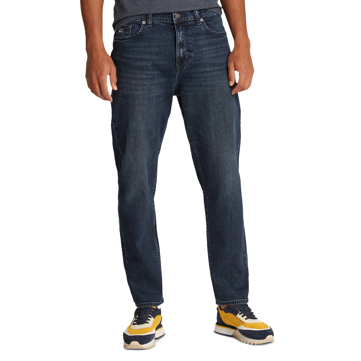 Questi jeans ISAAC RLXD TPRD AI51, 1BK di TOMMY JEANS sono un capo essenziale che coniuga estetica contemporanea e funzionalità. Caratterizzati da una vestibilità rilassata e affusolata che si adatta con disinvoltura, presentano il classico design a cinque tasche, chiusura con zip e bottone, e passanti per cintura, elementi che ne attestano la cura costruttiva. Un discreto logo è visibile sul taschino, aggiungendo un tocco distintivo al denim.