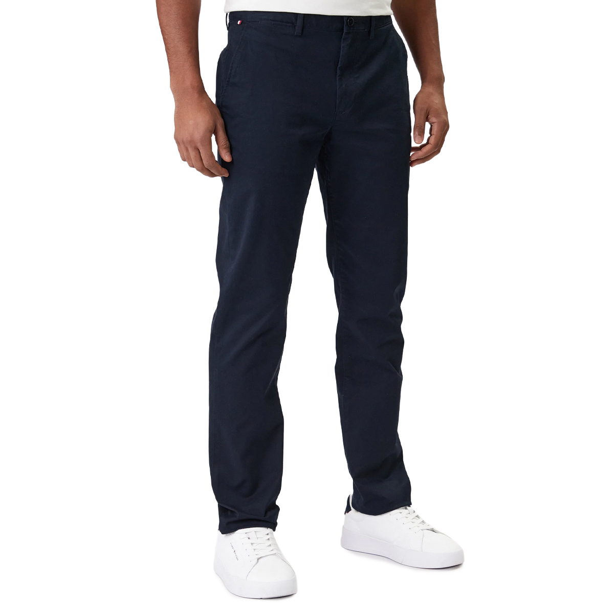 Questi pantaloni CORE DENTON ESSENTIA, AEG di TOMMY HILFIGER sono un esempio di design razionale e pulito, fondamentali per ogni proposta commerciale di alto livello. La linea straight fit assicura una vestibilità equilibrata, scivolando lungo la gamba con precisione sartoriale e definendo una silhouette sobria. Notiamo i dettagli delle cinque tasche e la chiusura con zip e bottone, elementi che sottolineano una praticità raffinata in ogni contesto d'uso.