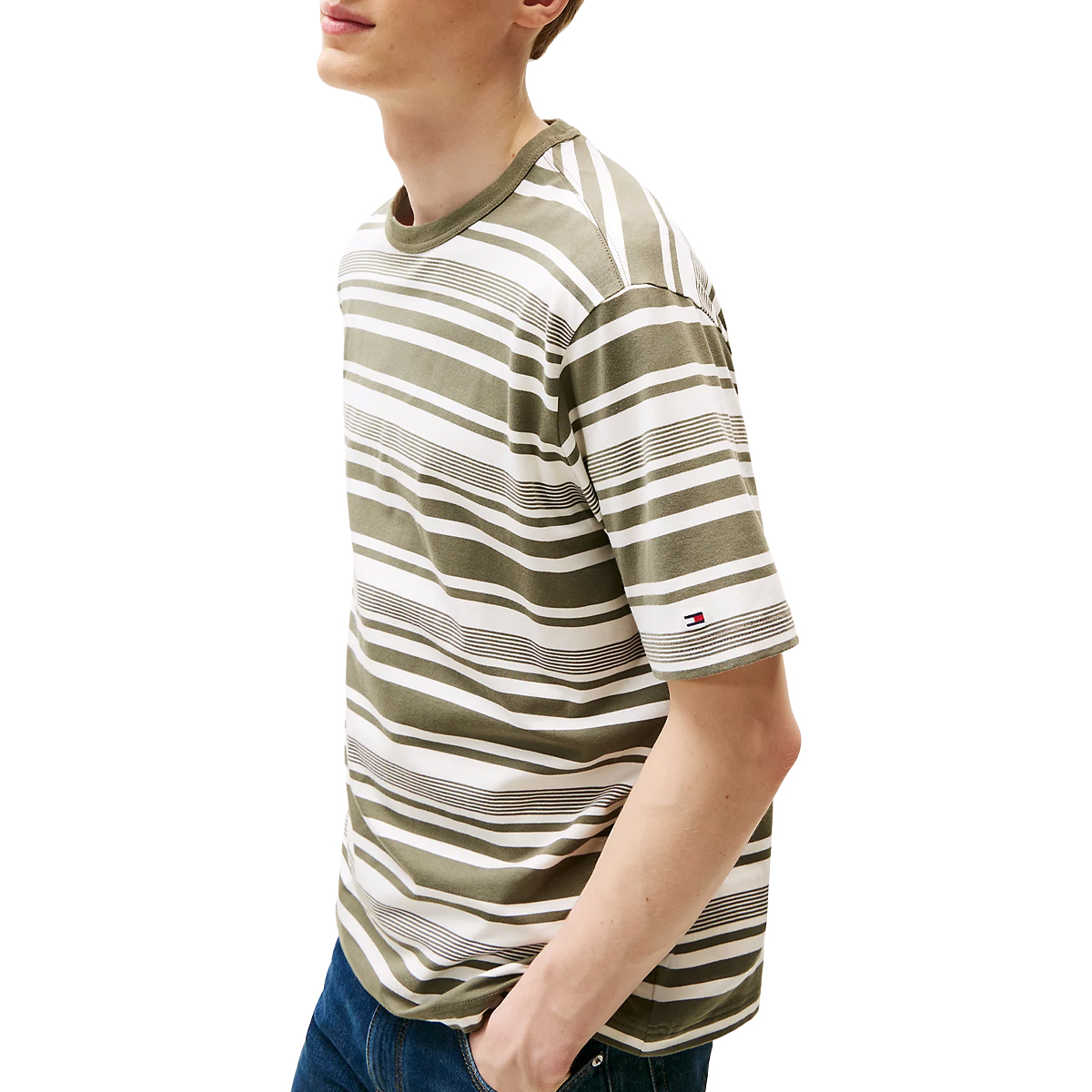 Questa T-shirt COTTON MODAL STRIPE, 0FA di TOMMY HILFIGER è un esempio di stile essenziale e cura del dettaglio, progettata per arricchire una proposta commerciale di alto livello. La struttura a righe orizzontali dona una profondità visiva equilibrata, mentre il girocollo a costine assicura una tenuta impeccabile e una resistenza superiore alle deformazioni. Il piccolo logo ricamato sulla manica aggiunge un segno distintivo di prestigio discreto, sottolineando la qualità costruttiva del capo.