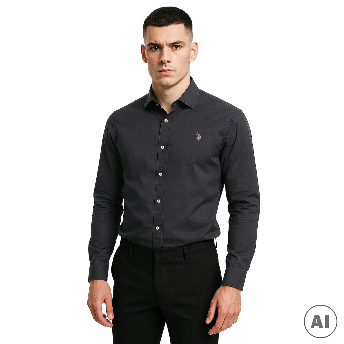 CAMICIA, DA UOMO, COLLO CLASSICO, REGULAR FIT, MANICA LUNGA, TINTA UNITA, LOGO RICAMATO, CHIUSURA BOTTONI