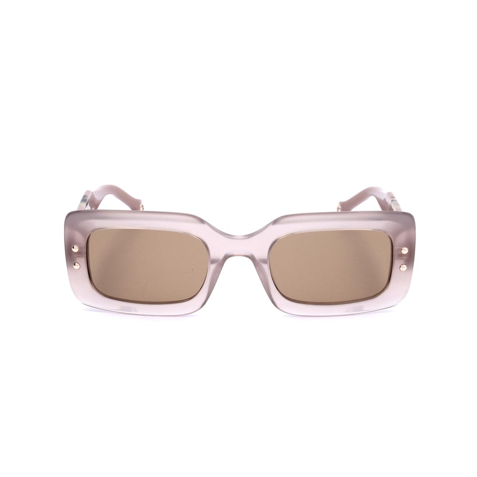 Šie CAROLINA HERRERA akiniai pasižymi griežta stačiakampio forma ir skaidria faktūra, kuri suteikia rėmeliams lengvumo pojūtį. Priekinėje dalyje esančios metalinės detalės subtiliai papildo dizainą, pabrėždamos konstrukcijos stabilumą ir platų kojelių profilį.