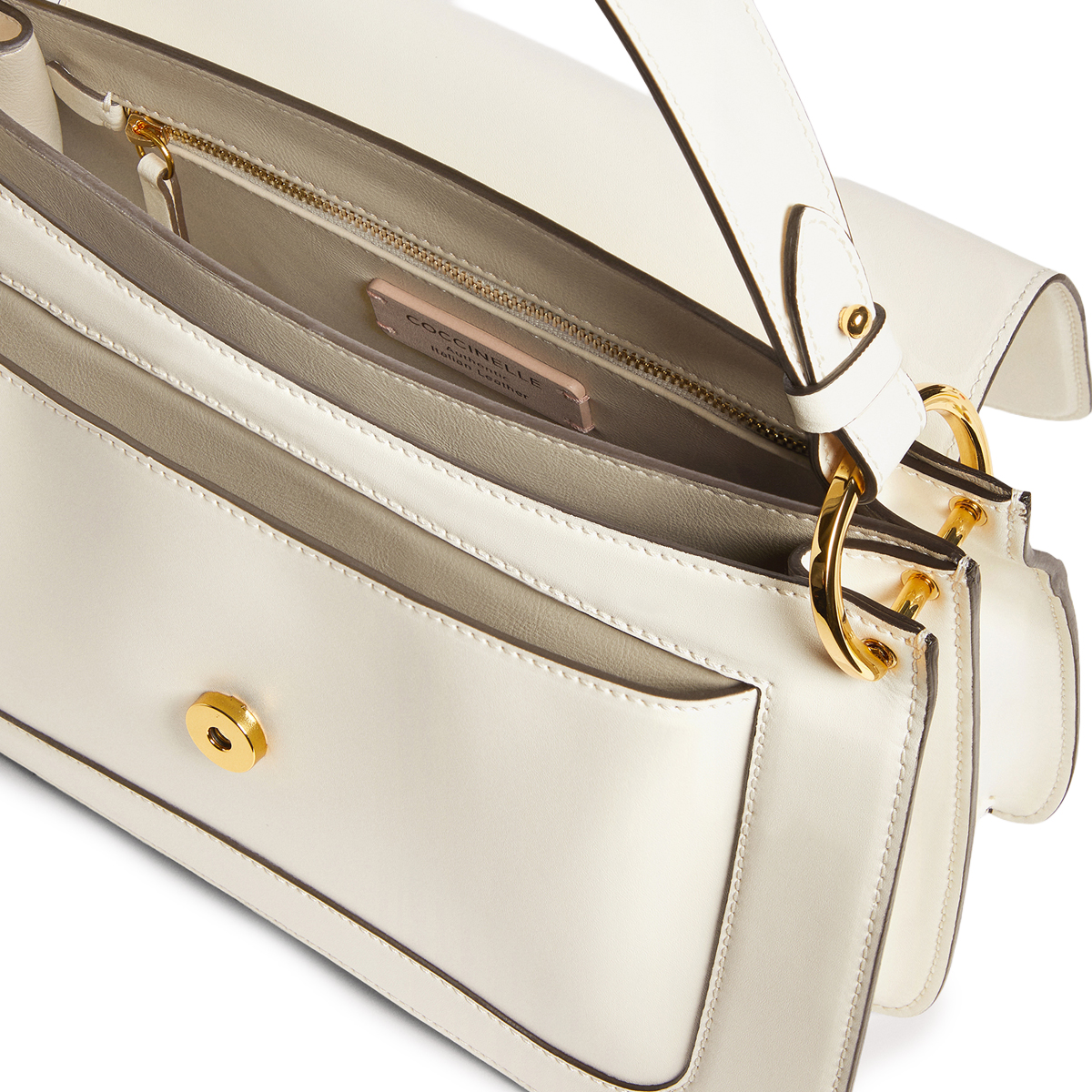 Ši rankinė COCCINELLE C-ME CALFCOCCINELLE pasižymi griežta, tačiau grakščia forma su unikaliu apatinės dalies išlinkimu. Minimalistinis dizainas derinamas su išraiškinga metaline sagtimi, kuri suteikia gaminiui charakterio ir atpažįstamumo.