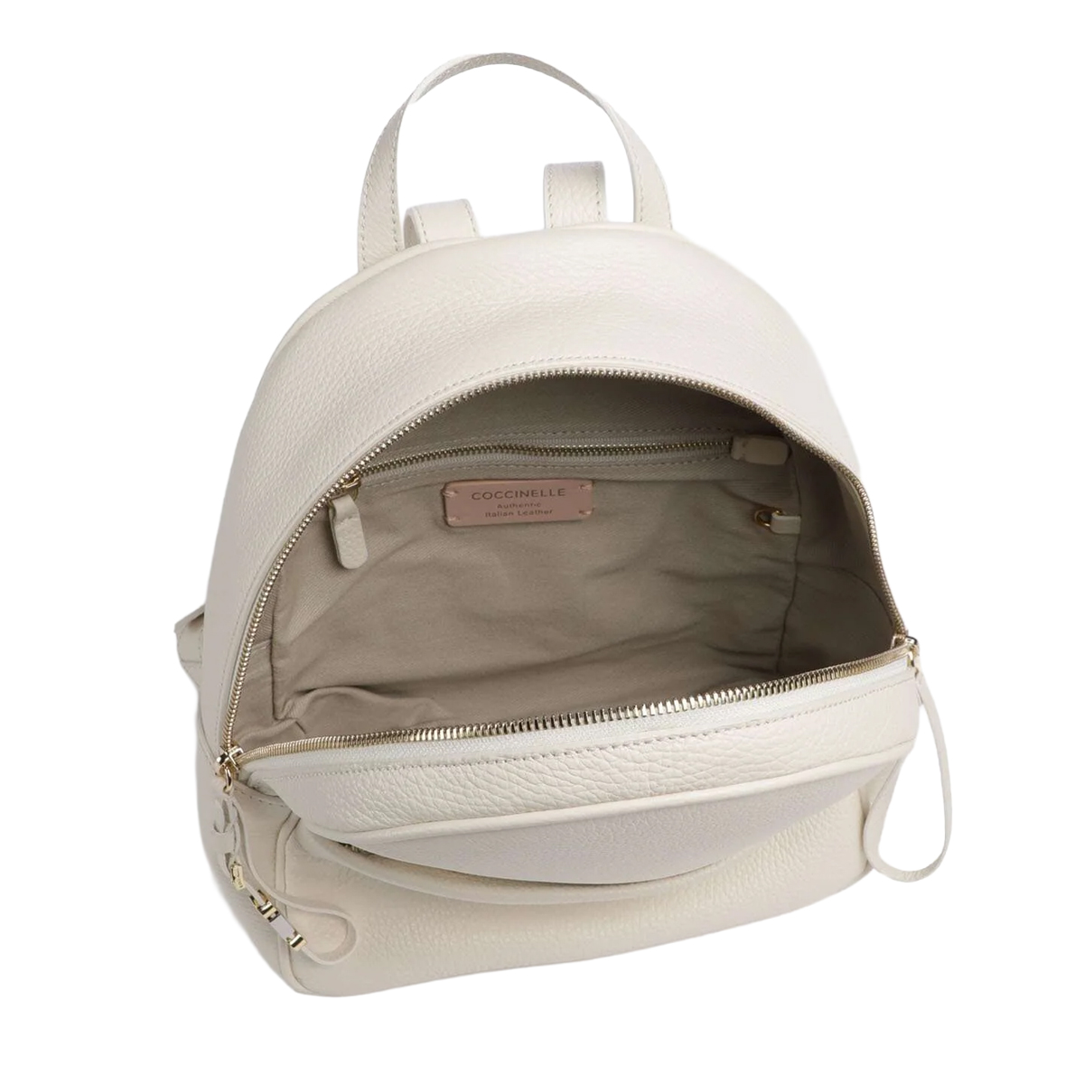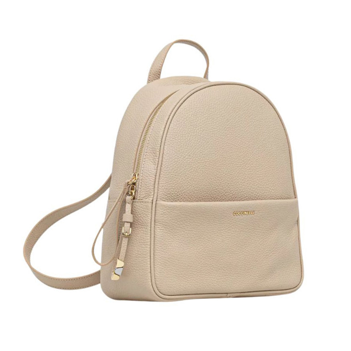 Ši COCCINELLE kuprinė COCCINELLENORY pasižymi grakščiu, skliautiniu siluetu, kuris suteikia gaminiui modernią ir subtilią išvaizdą. Išorinėje dalyje esanti talpi kišenė su prekės ženklo logotipu suteikia papildomo funkcionalumo, o dvigubas užtrauktukas viršuje užtikrina saugumą ir patogumą. Viršutinė rankena yra tvirta ir patogi, pabrėžianti apgalvotą gaminio konstrukciją.