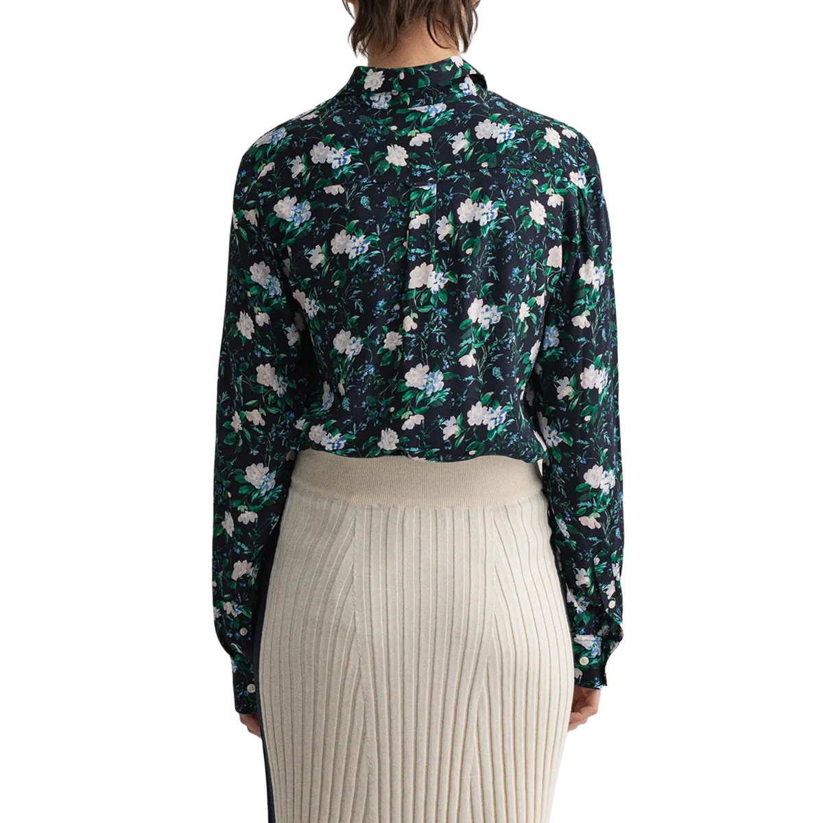 FLORAL SHIRT, FOR WOMEN, BASIC COLLAR, LONG SLEEVES, MULTICOLOR, WITH LOGO, BUTTONS CLOSURE