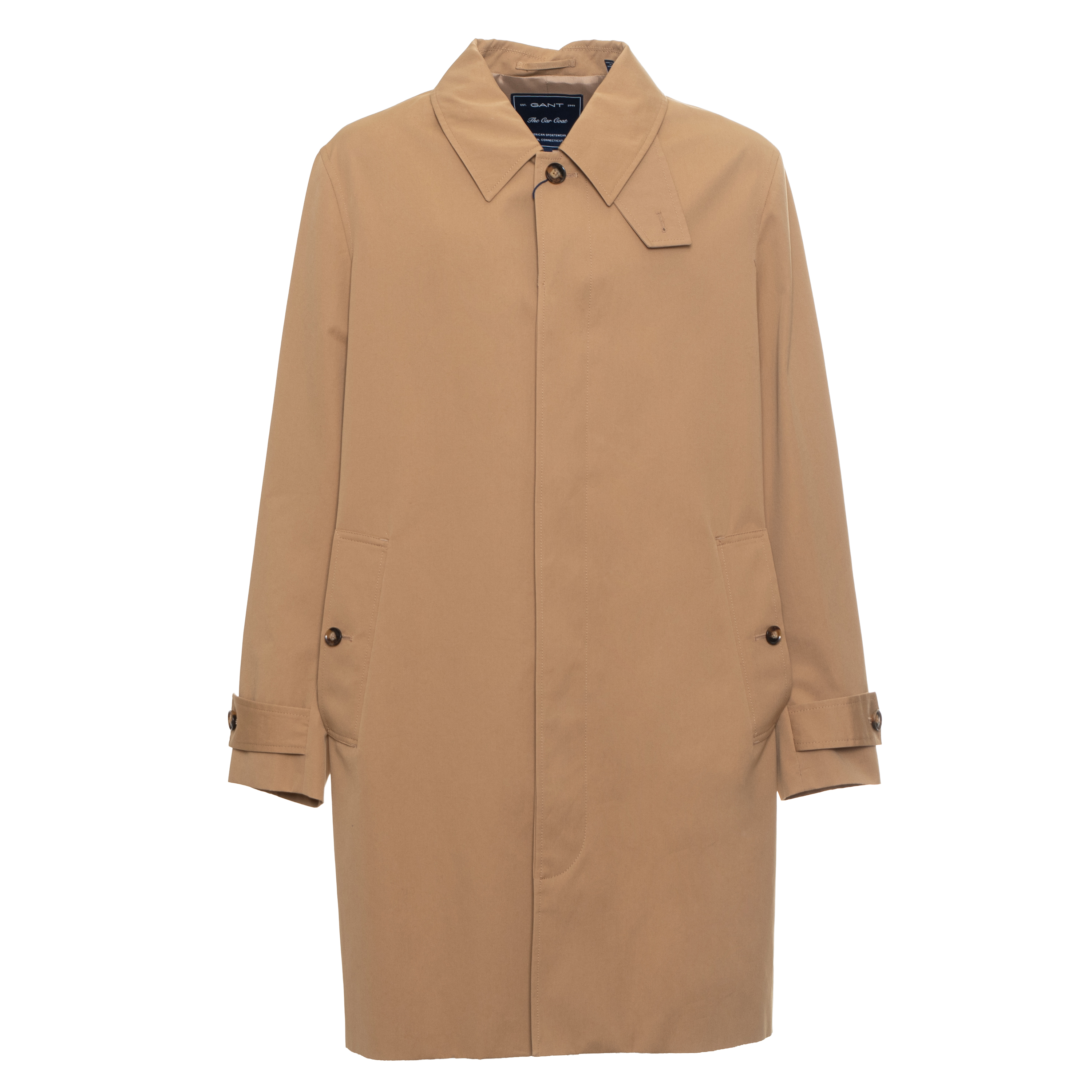 TRENCH, FOR MEN, POCKETS, LONG SLEEVES, SOLID COLOUR, WITH LOGO, BUTTON CLOSURE