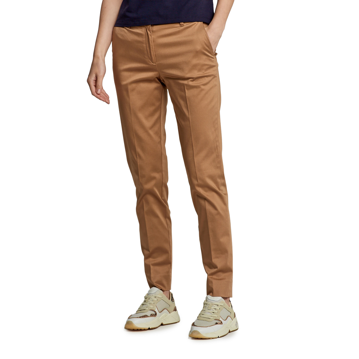 Šios GANT TP SATIN SLACK kelnės yra aukščiausios kokybės gaminys, išsiskiriantis savo glotnia tekstūra ir tiksliu siluetu. Keturių kišenių konstrukcija bei užtrauktuko ir sagos užsegimas sukuria tvarkingą įvaizdį, kurį dar labiau pabrėžia vertikali kanto linija. Tai drabužis, kuriame dominuoja estetinė švara ir dėmesys kiekvienai siūlei.