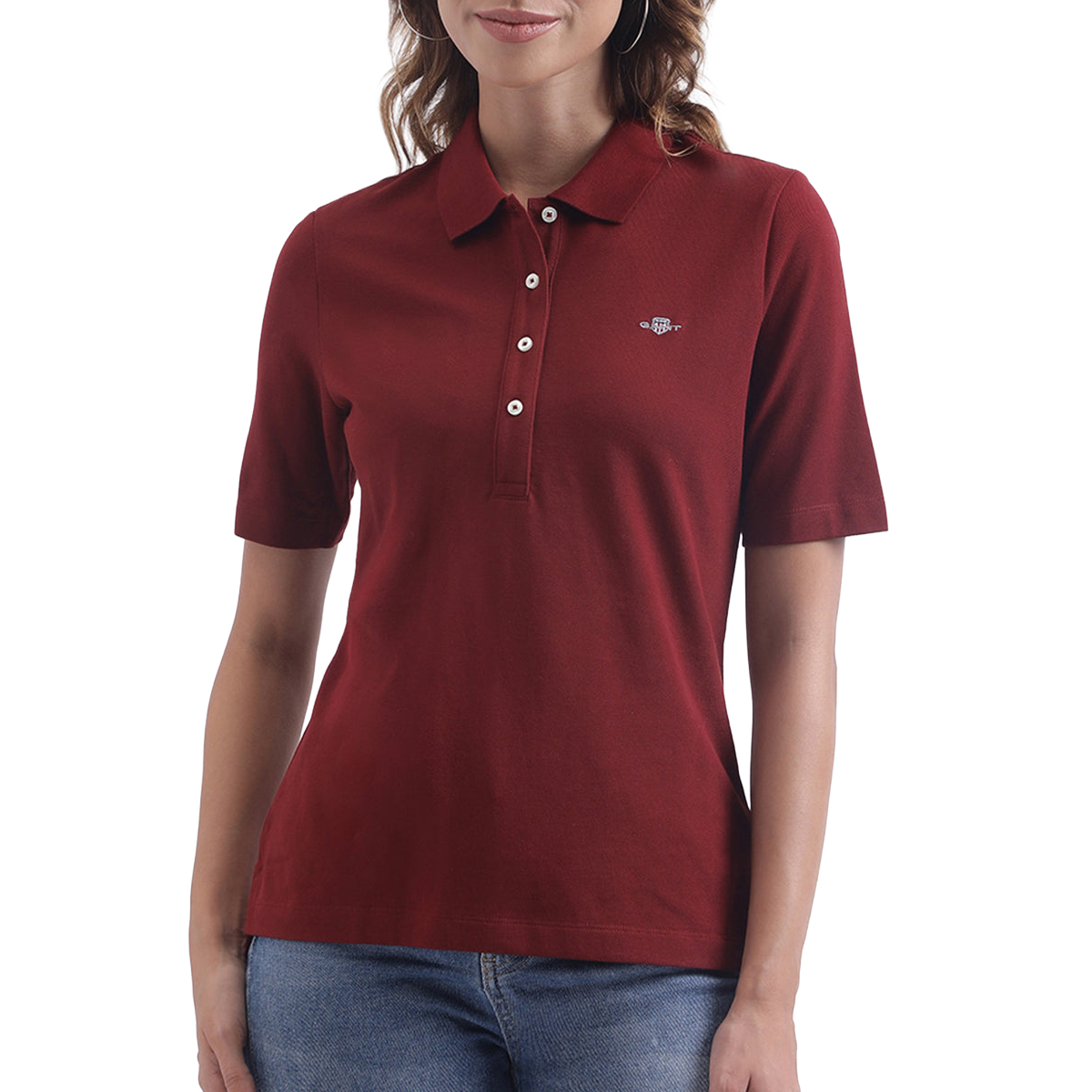 POLO SHIRT, FOR WOMEN, SHORT SLEEVES, SOLID COLOUR, EMBROIDERED LOGO, WITH BUTTONS