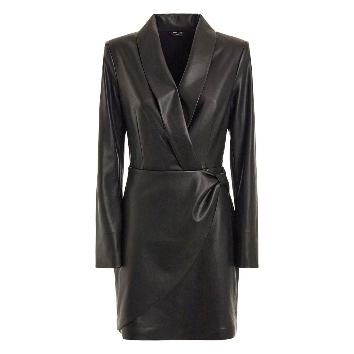 KNEE-LENGHT DRESS, FOR WOMEN, V-NECK, LONG SLEEVES, SOLID COLOUR, WITH LOGO