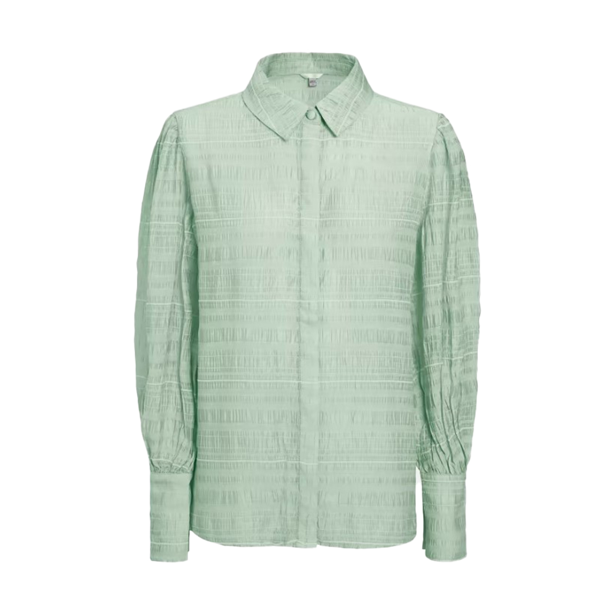 SHIRT, FOR WOMEN, BASIC COLLAR, LONG SLEEVES, SOLID COLOUR, WITH LOGO