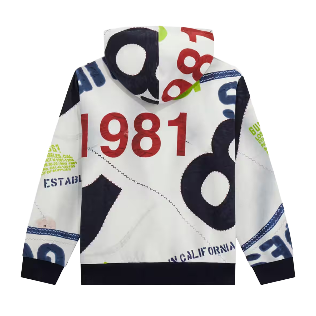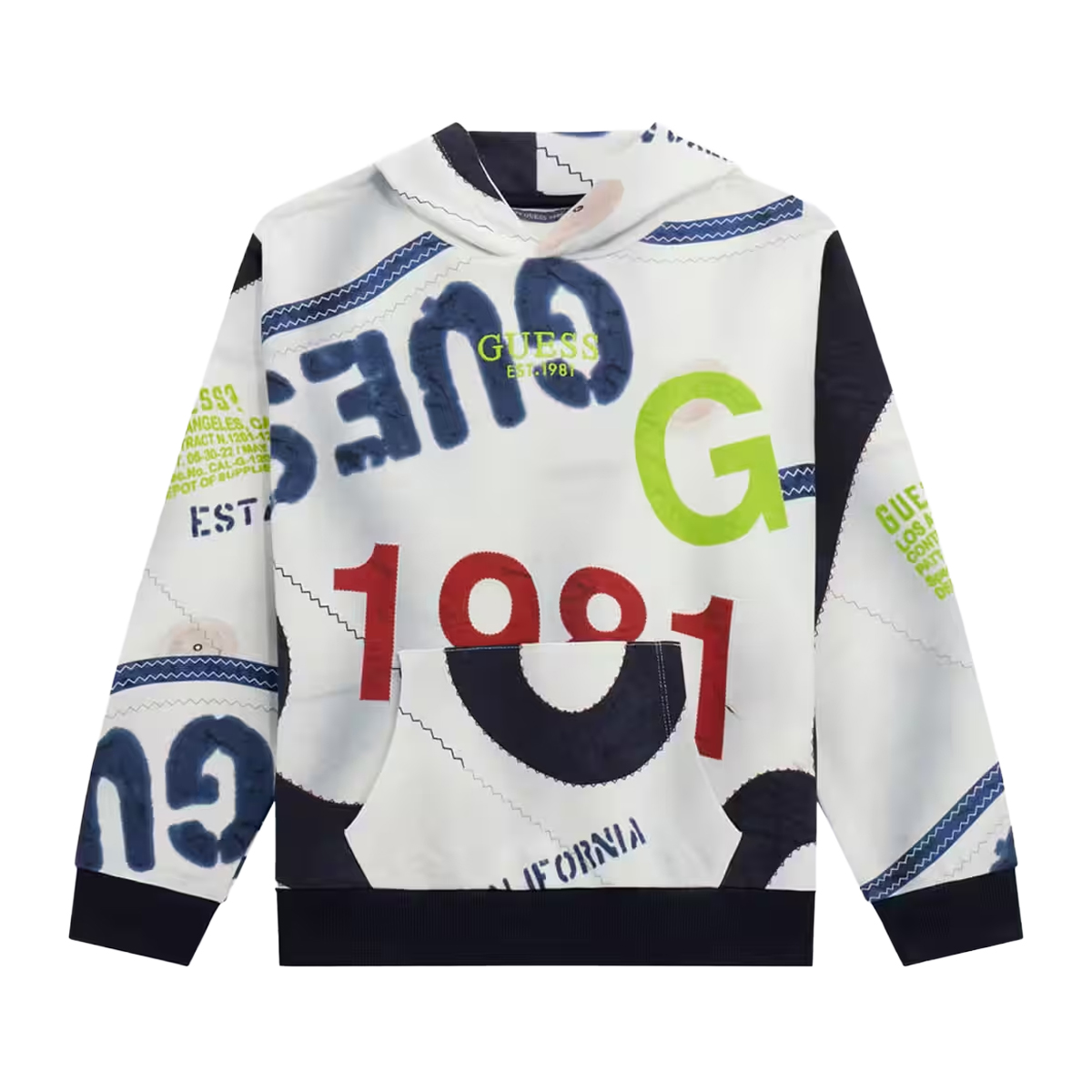 SWEATSHIRT, FOR KIDS, WITH HOOD, LONG SLEEVES, PATTERNED, MULTICOLOR, EMBROIDERED LOGO