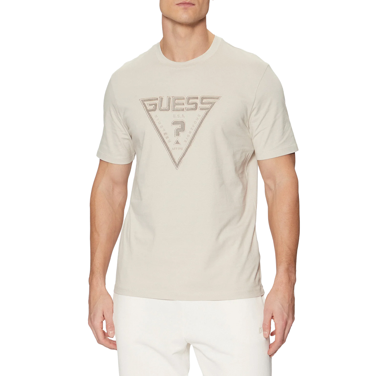 Šie T-SHIRT MIDWAY CN T-SHIRT iš GUESS yra modernaus dizaino pavyzdys, išsiskiriantis savo švaria estetika. Siuvinėtas trikampis logotipas ant krūtinės suteikia gaminiui subtilaus reljefiškumo ir pabrėžia prekės ženklo identitetą. Klasikinis kirpimas su trumpomis rankovėmis ir tvarkingai apdirbta apykakle sukuria subalansuotą siluetą, tinkantį įvairiems stiliaus deriniams.