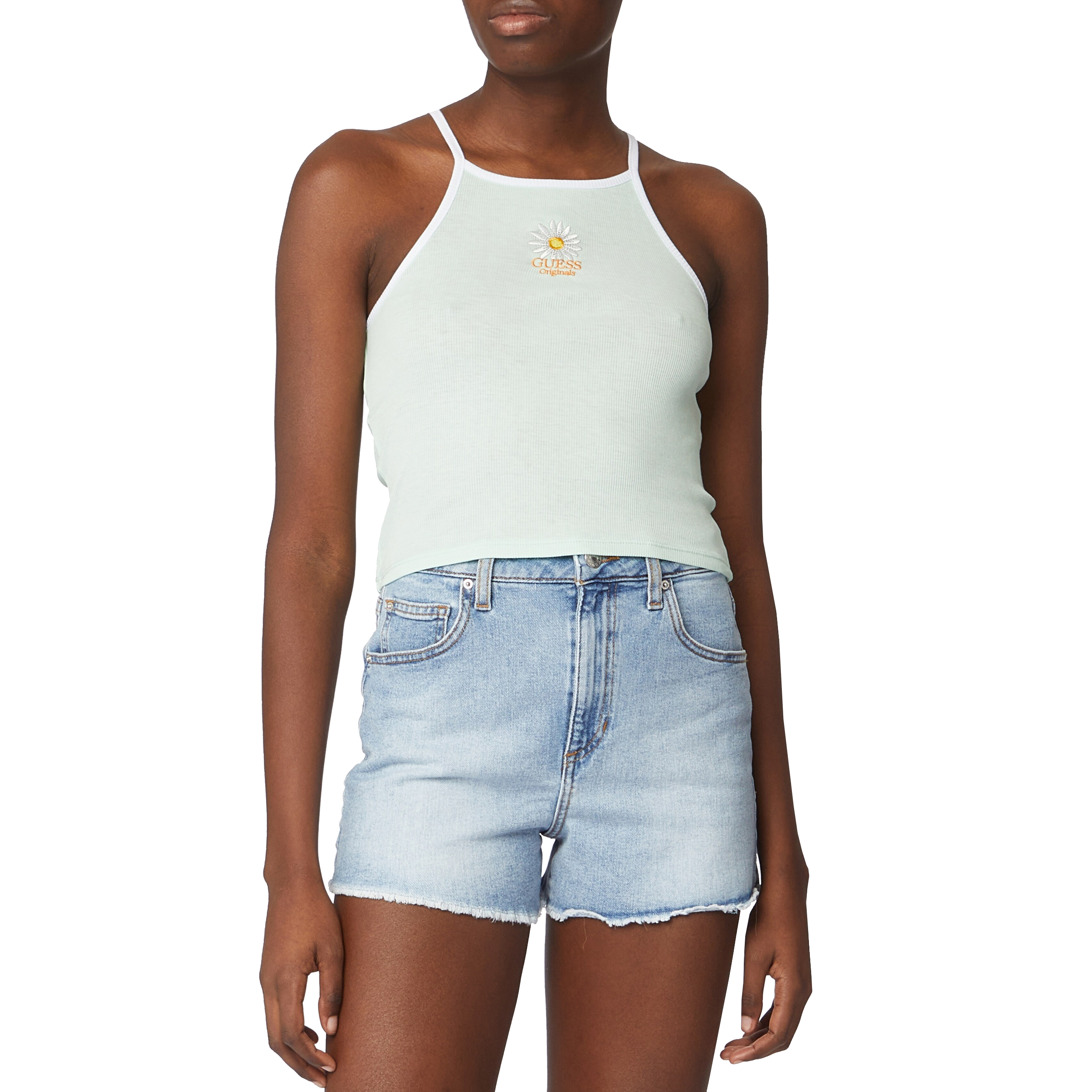 TOP, FOR WOMEN, BI-COLOR, EMBROIDERED LOGO, WITH SUSPENDERS
