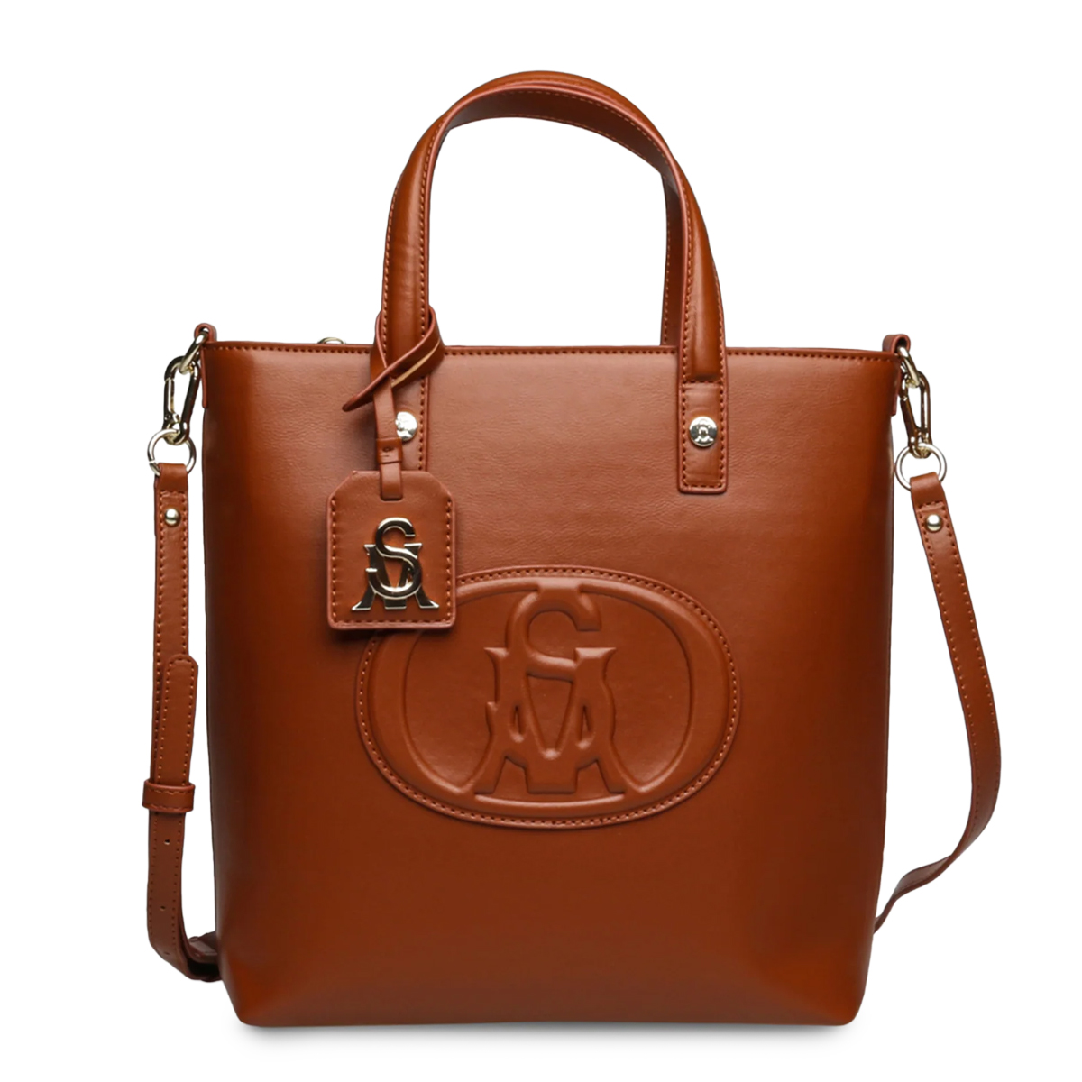 HANDBAG, FOR WOMEN, DOUBLE HANDLE, SOLID COLOUR, WITH LOGO, ZIP CLOSURE