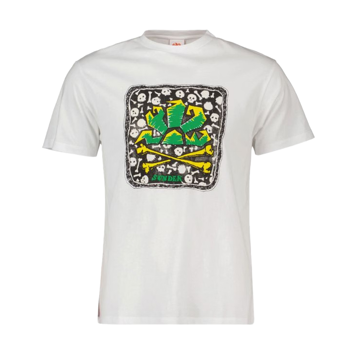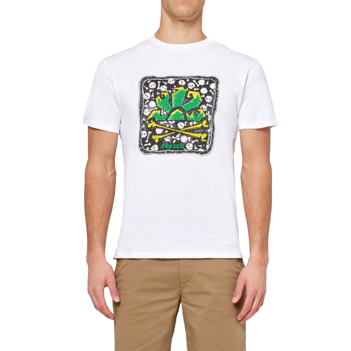 Ši T-SHIRT SUNDEK - T-SHIRT iš SUNDEK pasižymi precizišku sukirpimu ir išraiškingu grafiniu elementu krūtinės srityje. Trumpų rankovių ir apvalios apykaklės derinys sukuria subalansuotą siluetą, kuris vertinamas dėl savo konstrukcinio paprastumo. Drabužis yra pagamintas ITALIJOJE, kas pabrėžia aukštą gamybos kultūrą ir profesionalų meistriškumą.