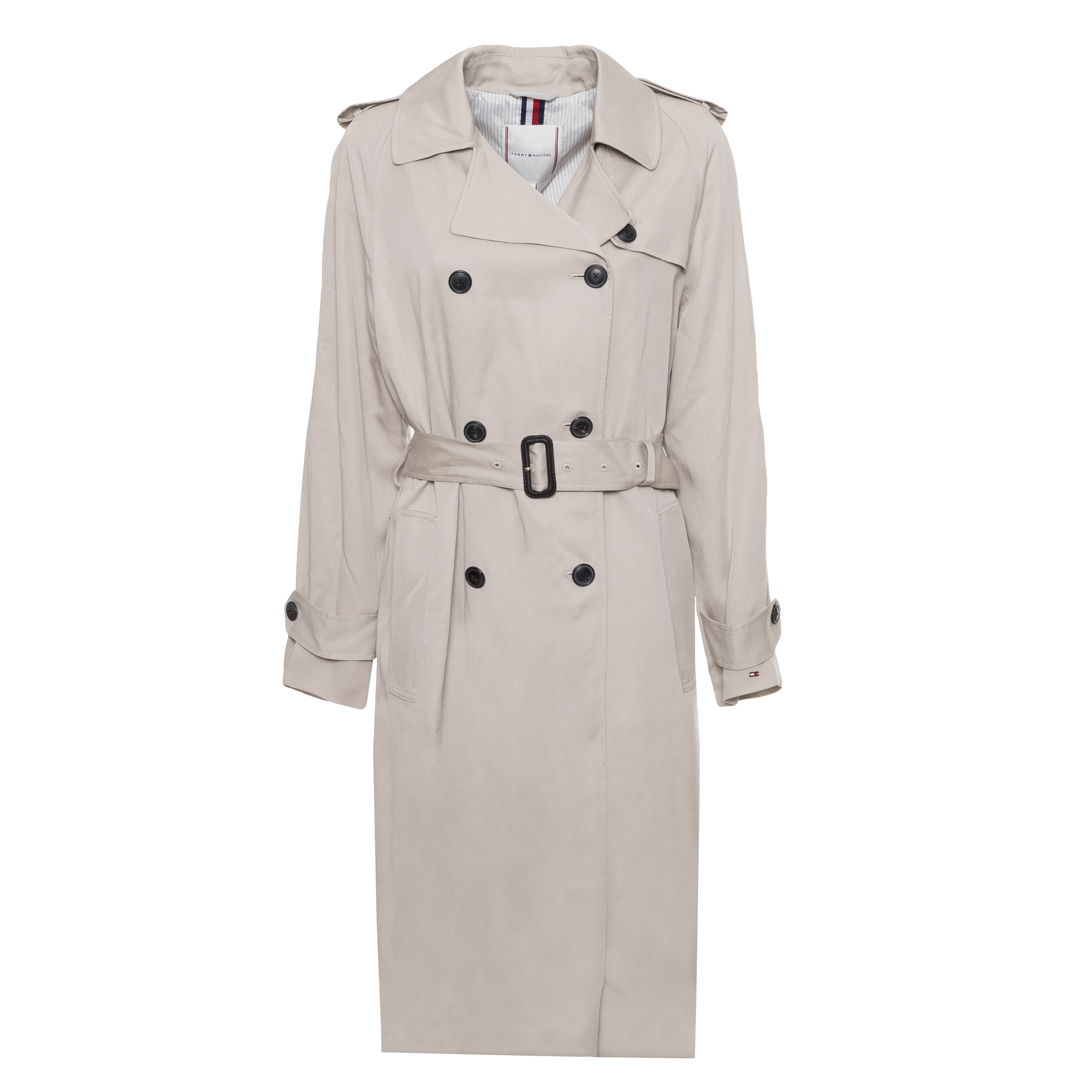 RAINCOAT, FOR WOMEN, POCKETS, LONG SLEEVES, SOLID COLOUR, WITH LOGO, DOUBLE BREASTED