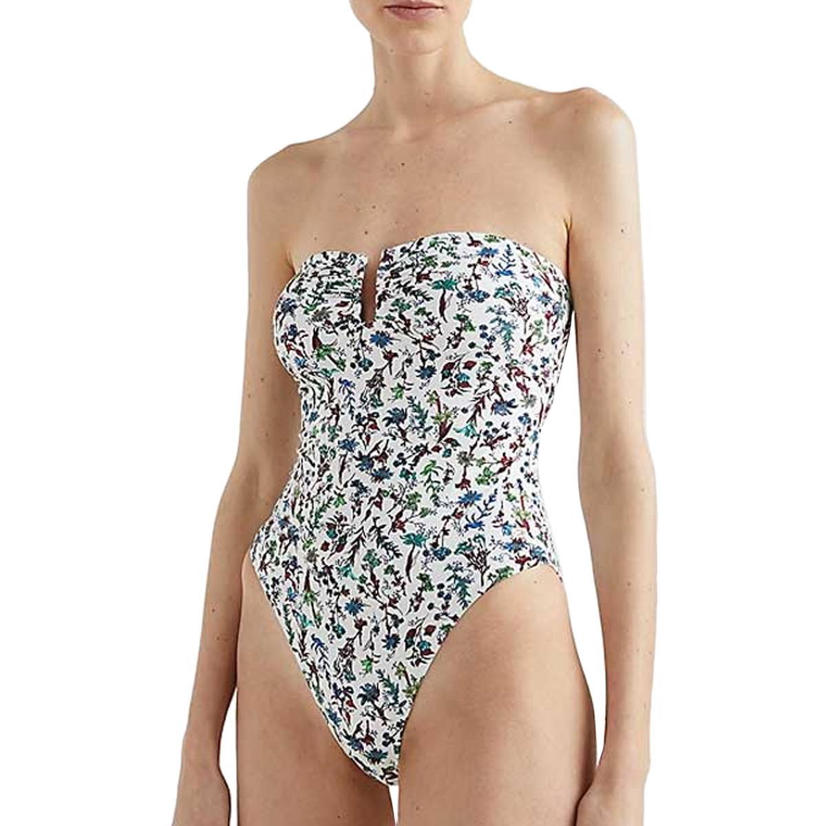 Šis TOMMY HILFIGER vienos dalies maudymosi kostiumėlis BANDEAU ONE PIECE PR, 02R pasižymi precizišku sukirpimu ir aukščiausios kokybės medžiagomis. Viršutinė dalis suformuota kaip bandeau su stilinga V formos išpjova centre, kuri suteikia modeliui modernų akcentą. Visą gaminio paviršių puošia gėlių raštai, o aukštas kojų iškirpimas vizualiai ilgina siluetą. Prekės ženklo logotipas subtiliai integruotas į dizainą, pabrėžiant gaminio kilmę ir kokybės standartus.