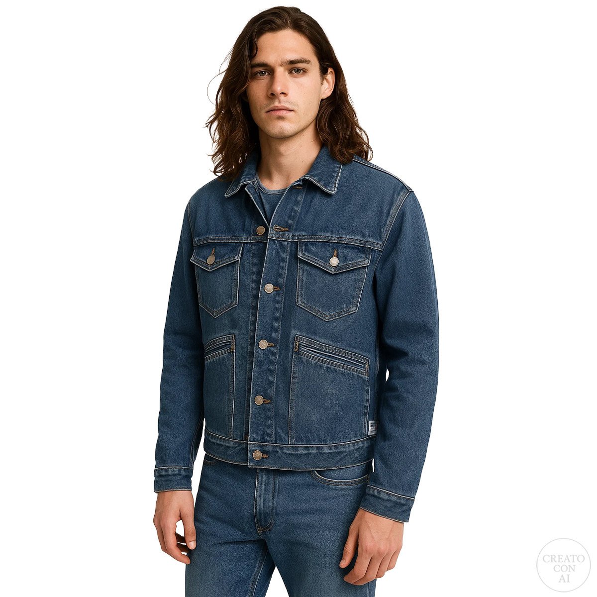 JEANS, FOR MEN, POCKETS, LONG SLEEVES, SOLID COLOUR, EMBROIDERED LOGO, BUTTON CLOSURE