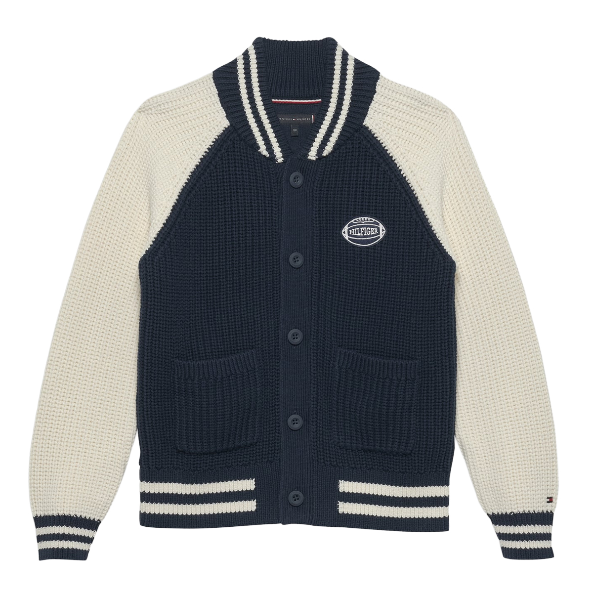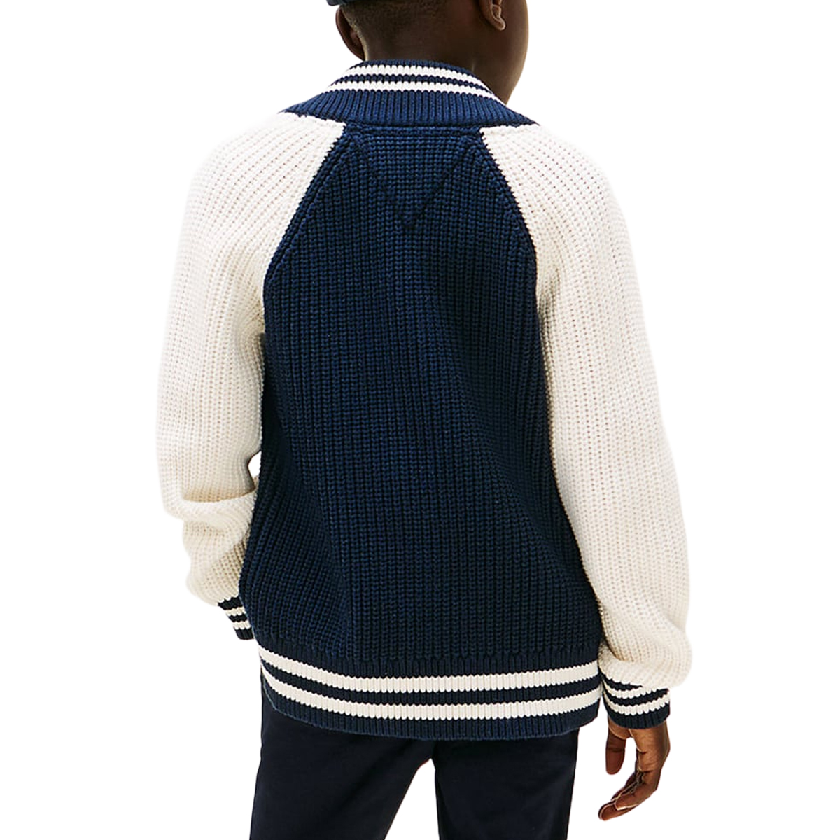 CARDIGAN, FOR KIDS, LONG SLEEVES, BI-COLOR, WITH LOGO, BUTTON CLOSURE