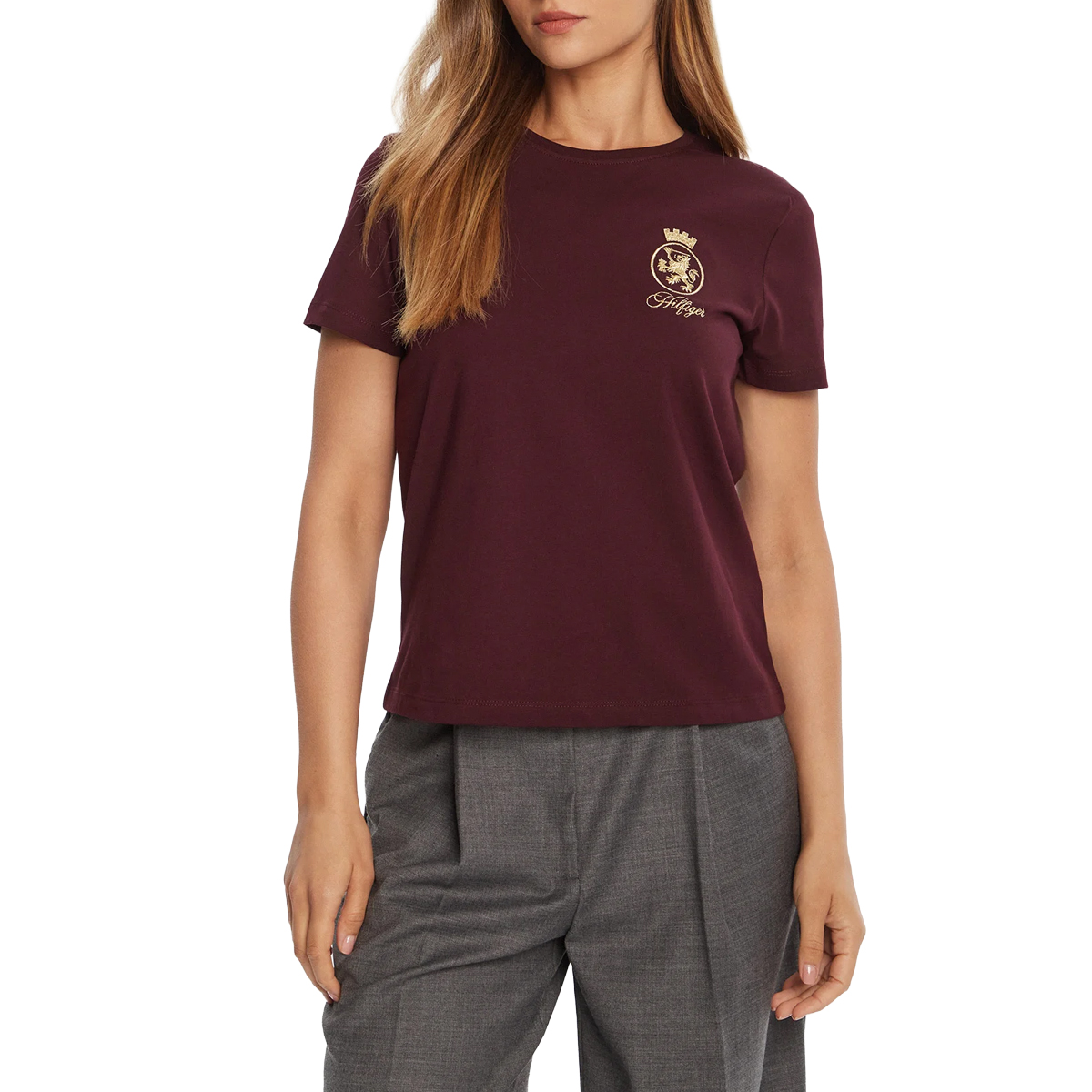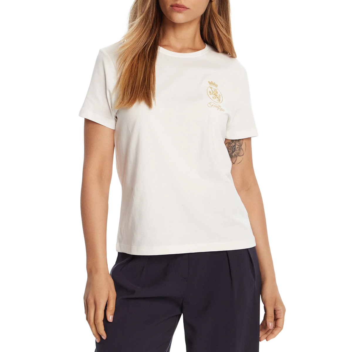 T-SHIRT, FOR WOMEN, ROUND NECK, SHORT SLEEVES, SOLID COLOUR, EMBROIDERED LOGO