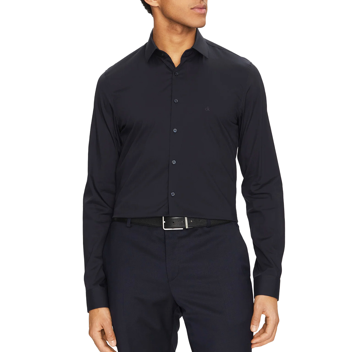 SHIRT, FOR MEN, BASIC COLLAR, SLIM FIT, LONG SLEEVES, SOLID COLOUR, EMBROIDERED LOGO