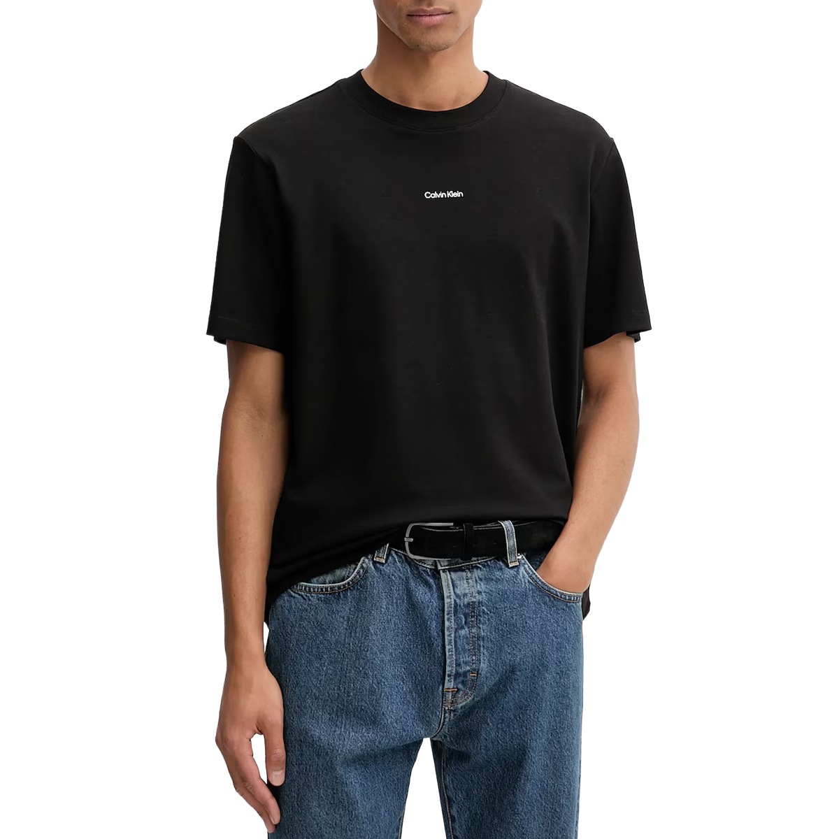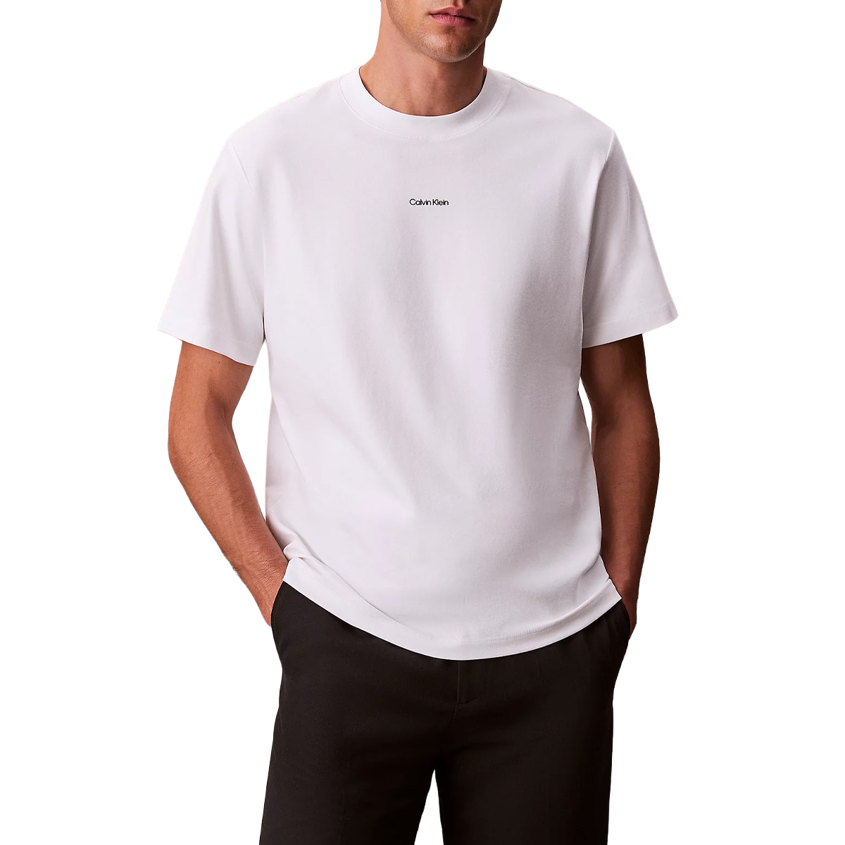 T-SHIRT, FOR MEN, ROUND NECK, SHORT SLEEVES, SOLID COLOUR, WITH LOGO